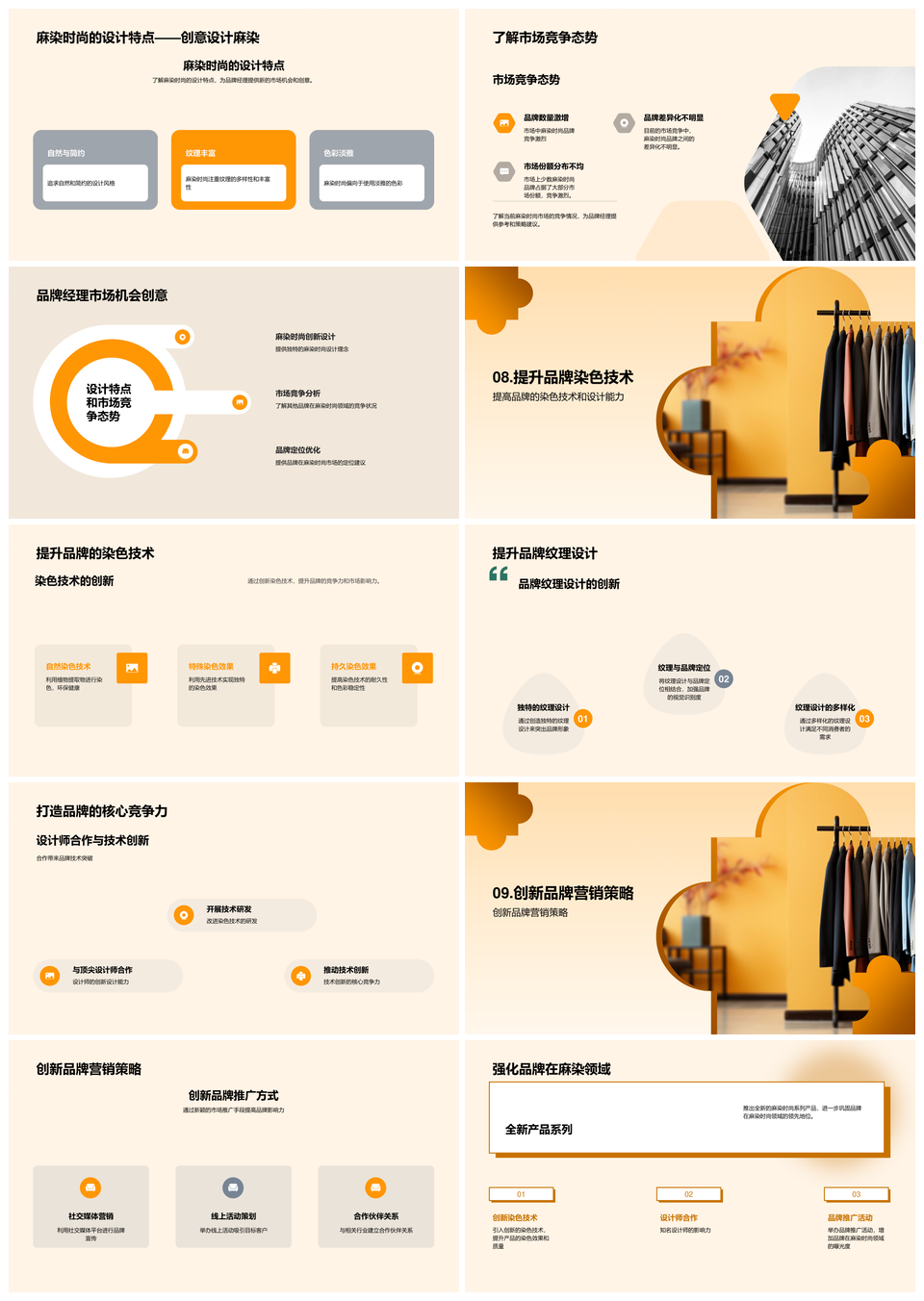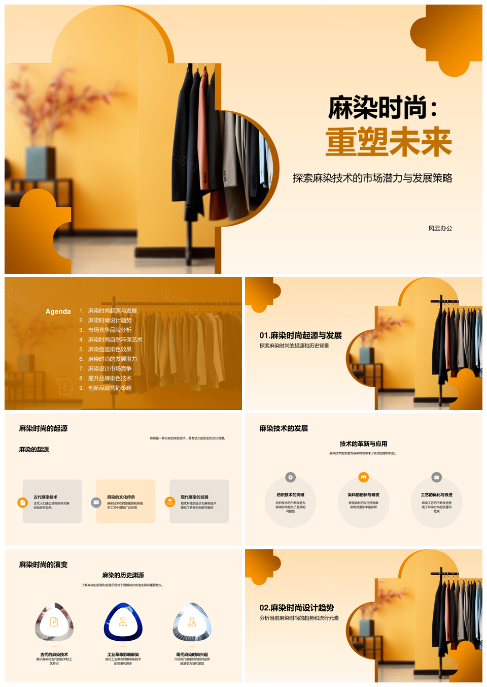 风云办公提供的麻染技术趋势与品牌策略市场分析PPT模板,下载格式为pptx,一共39页,作品中文字及图均可以修改和编辑,图片更改请在作品中右键图片并更换,文字修改请直接点击文字进行修改。