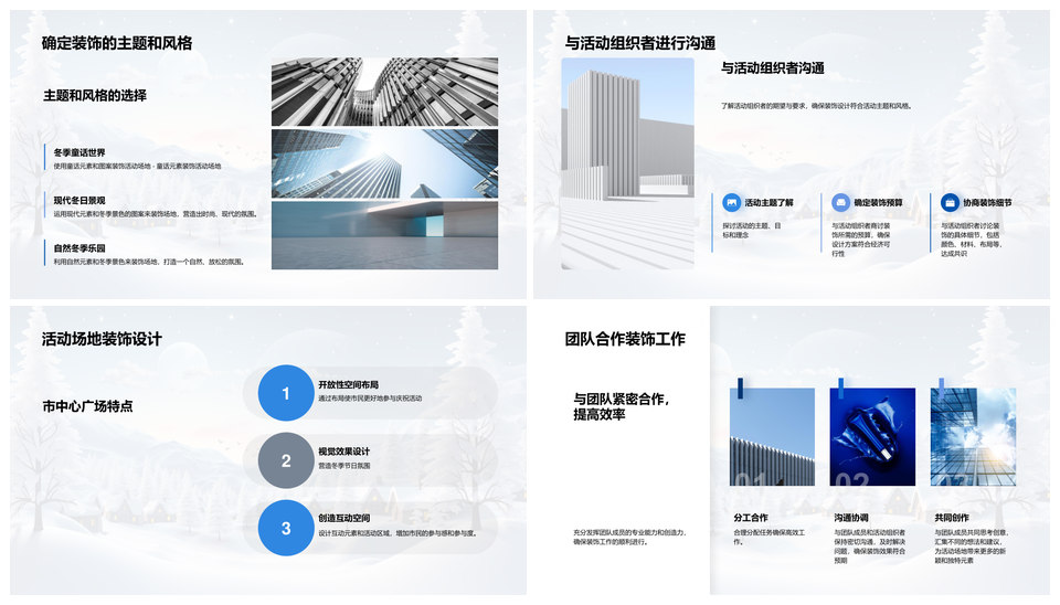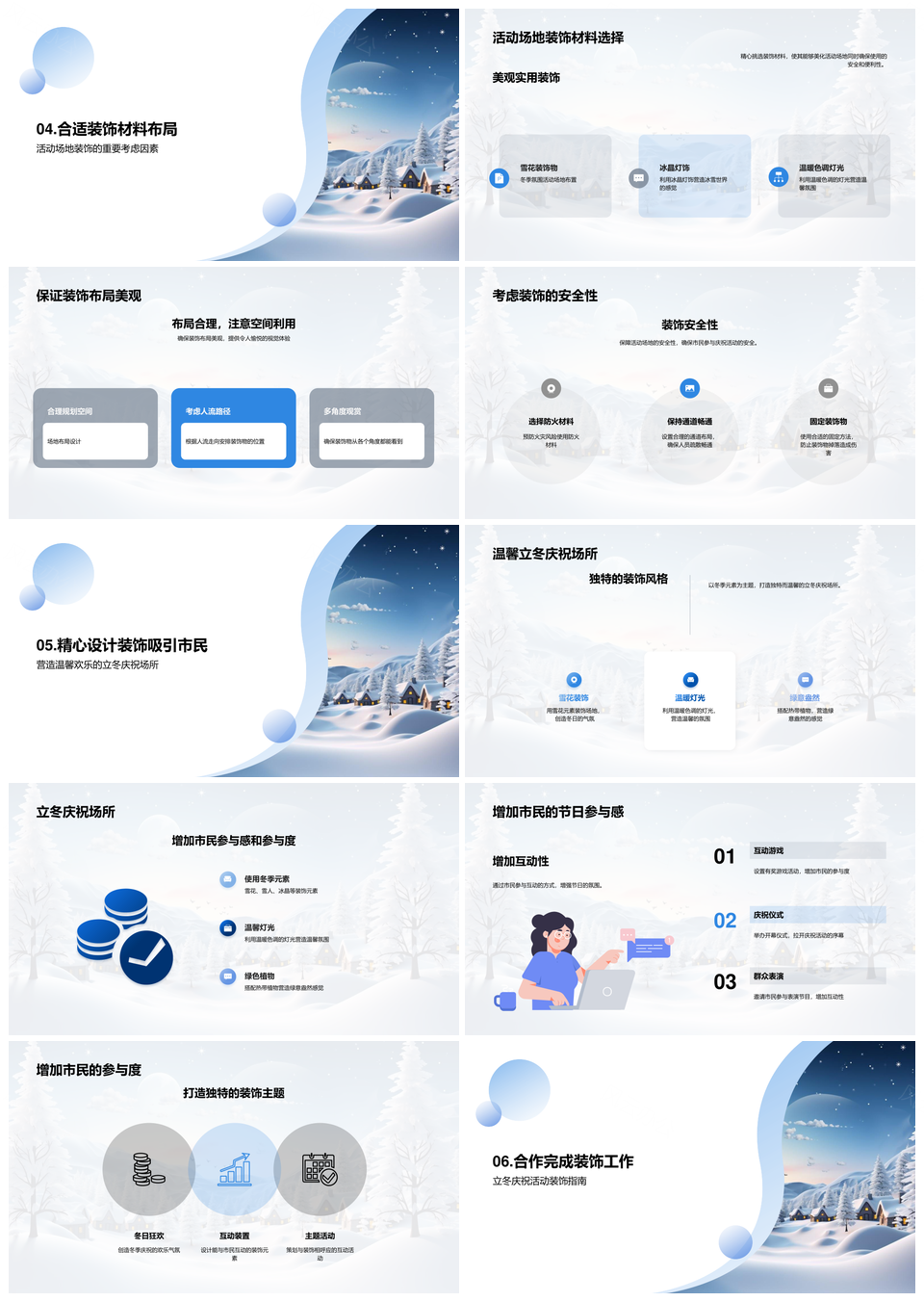 这是一张立冬庆祝活动场地雪花冬季装饰设计PPT模板,包含立冬、庆祝活动、场地、雪花、冬季、装饰、设计等主题内容,也可用作立冬庆祝活动场地、雪花冬季装饰设计、立冬庆祝活动、庆祝活动场地、活动场地雪花、场地雪花冬季、冬季装饰设计、立冬庆祝、庆祝活动、活动场地、场地雪花、雪花冬季、冬季装饰、装饰设计、立冬冬季装饰设计等PPT场景使用。