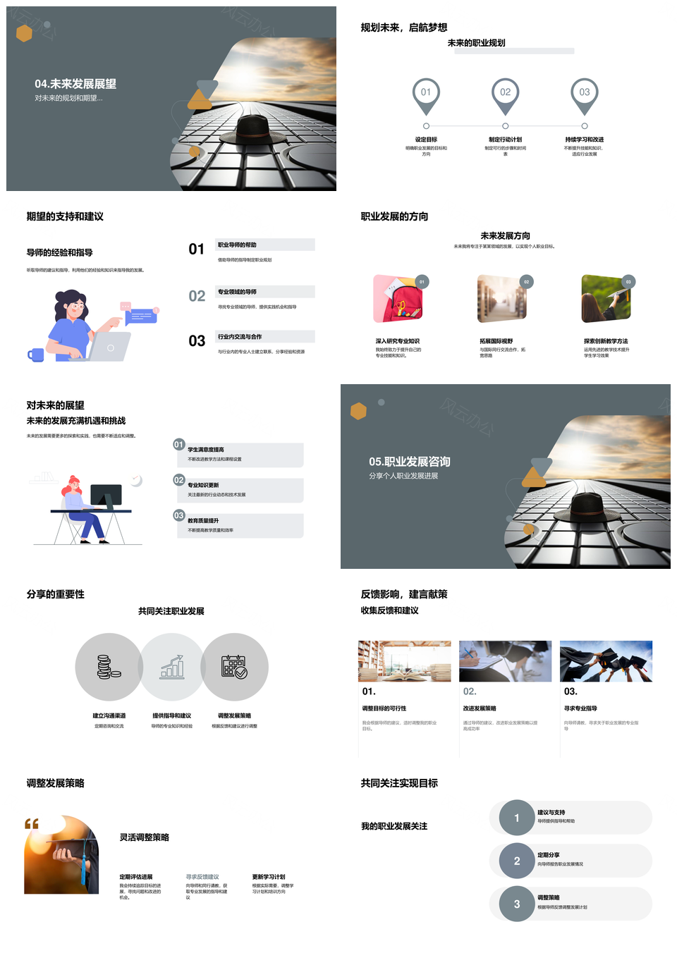 这是一张职业定位专业兴趣目标策略规划发展之路PPT模板,包含职业定位、专业兴趣、目标策略、规划发展等主题内容,也可用作职业定位专业兴趣目标、定位专业兴趣目标策略、专业兴趣目标策略规划、兴趣目标策略规划发展、目标策略规划发展之路、职业定位专业兴趣、定位专业兴趣目标、专业兴趣目标策略、兴趣目标策略规划、目标策略规划发展、策略规划发展之路、职业定位专业、定位专业兴趣、专业兴趣目标、兴趣目标策略等PPT场景使用。 风云办公提供的职业定位专业兴趣目标策略规划发展之路PPT模板,下载格式为pptx,一共28页,作品中文字及图均可以修改和编辑,图片更改请在作品中右键图片并更换,文字修改请直接点击文字进行修改。