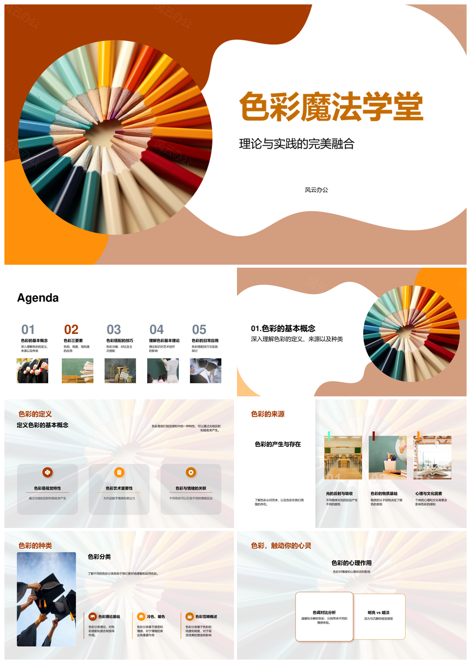 风云办公提供的色彩理论三属性与色轮解析学堂PPT模板,下载格式为pptx,一共24页,作品中文字及图均可以修改和编辑,图片更改请在作品中右键图片并更换,文字修改请直接点击文字进行修改。