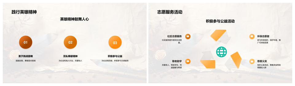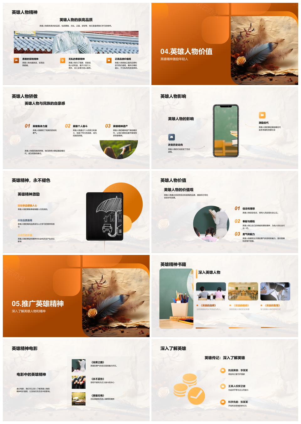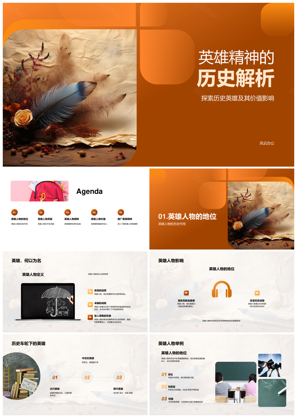 风云办公提供的英雄精神历史发展及代表人物贡献PPT模板,下载格式为pptx,一共30页,作品中文字及图均可以修改和编辑,图片更改请在作品中右键图片并更换,文字修改请直接点击文字进行修改。