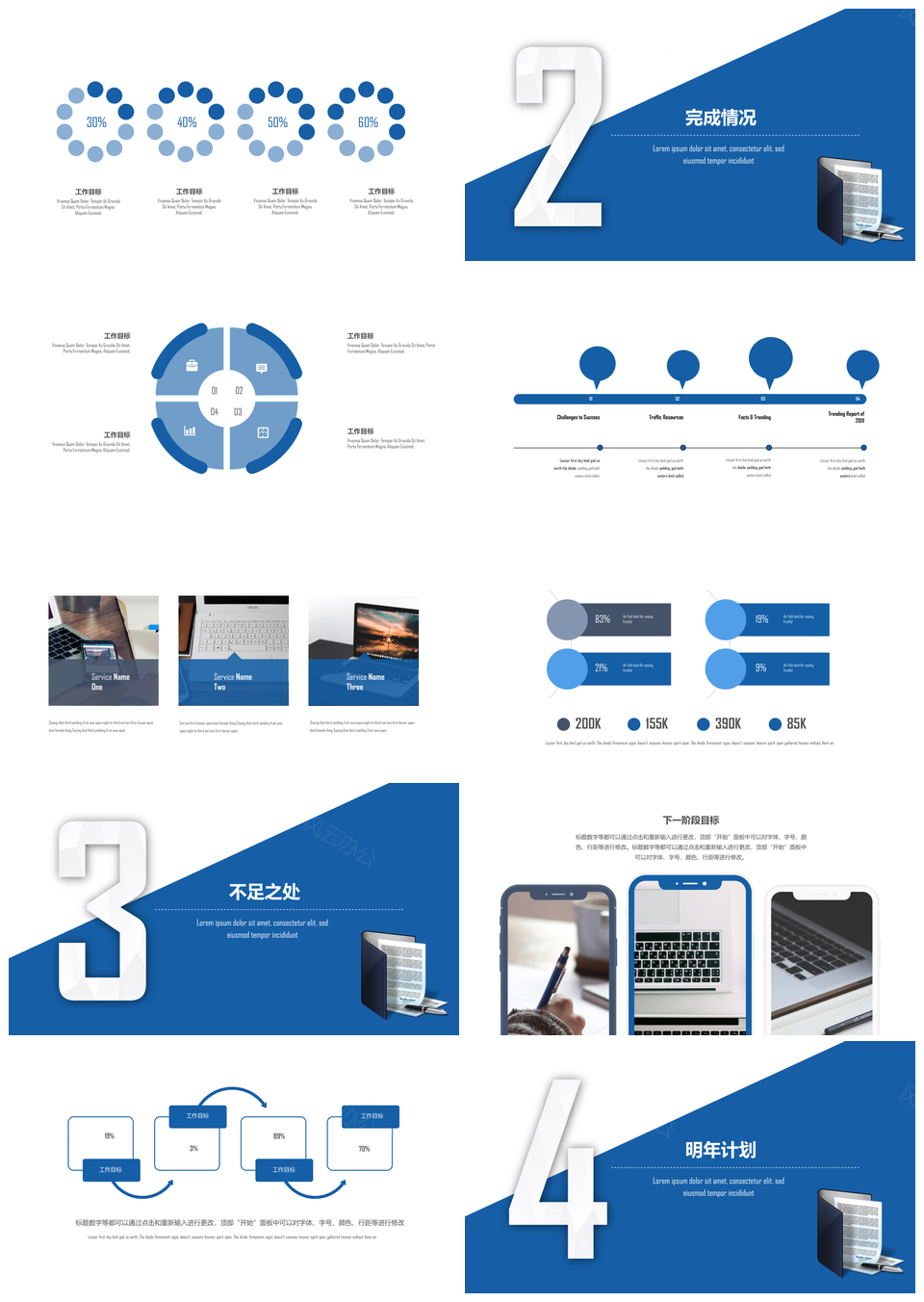 2025蓝色清新极简风年终总结计划述职报告分层可编辑PPT模板