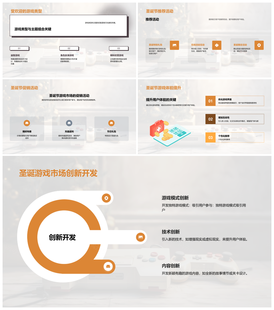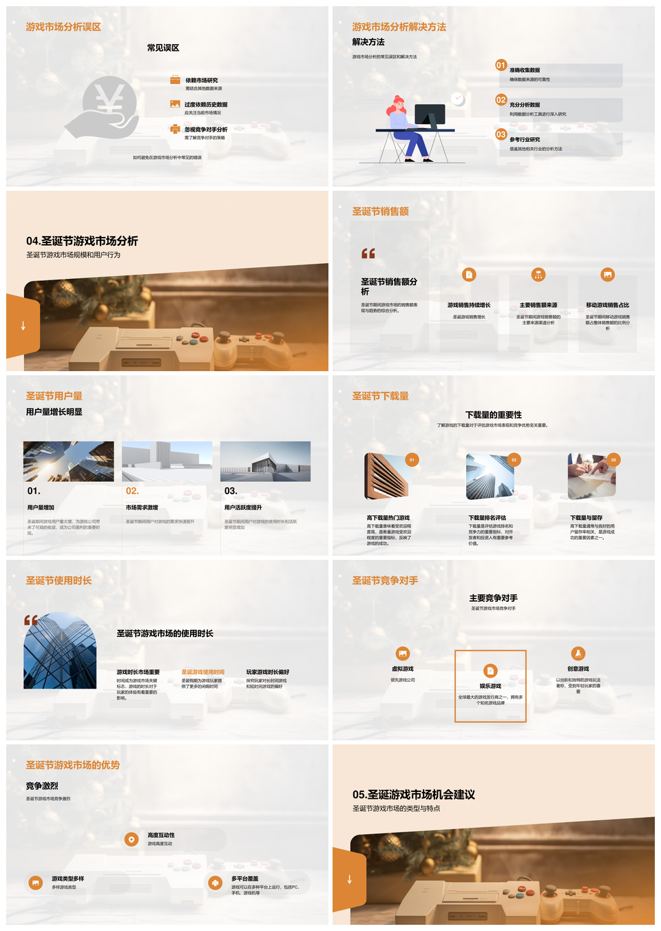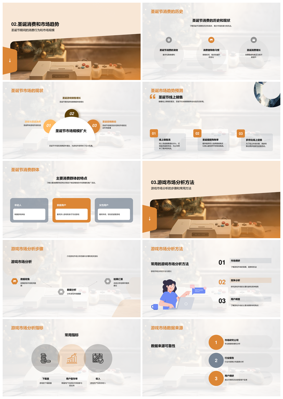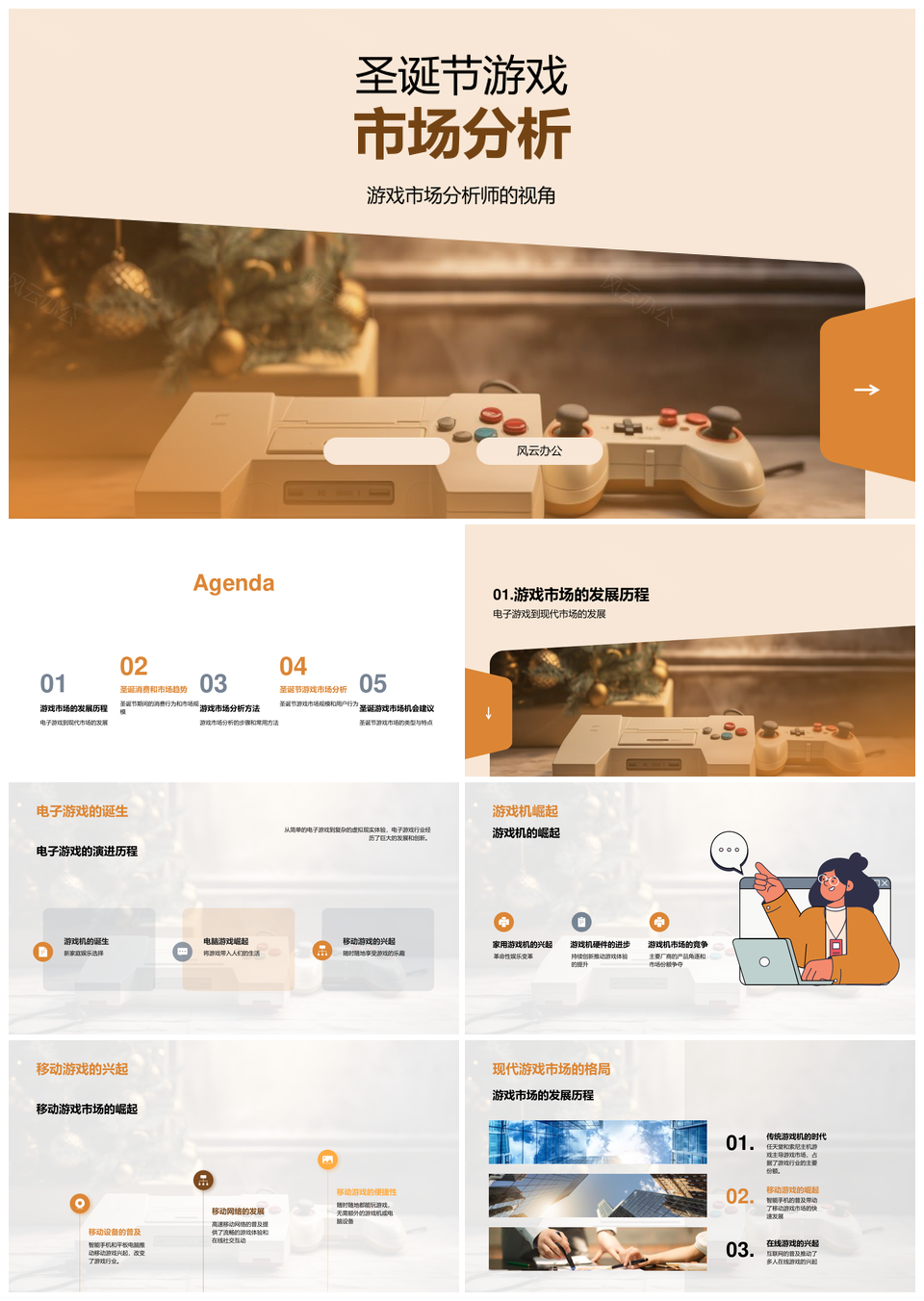 风云办公提供的圣诞游戏市场规模趋势机会竞争分析PPT模板,下载格式为pptx,一共33页,作品中文字及图均可以修改和编辑,图片更改请在作品中右键图片并更换,文字修改请直接点击文字进行修改。