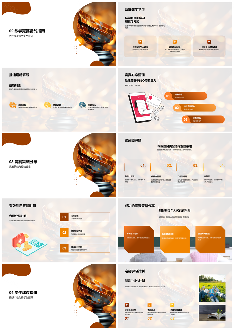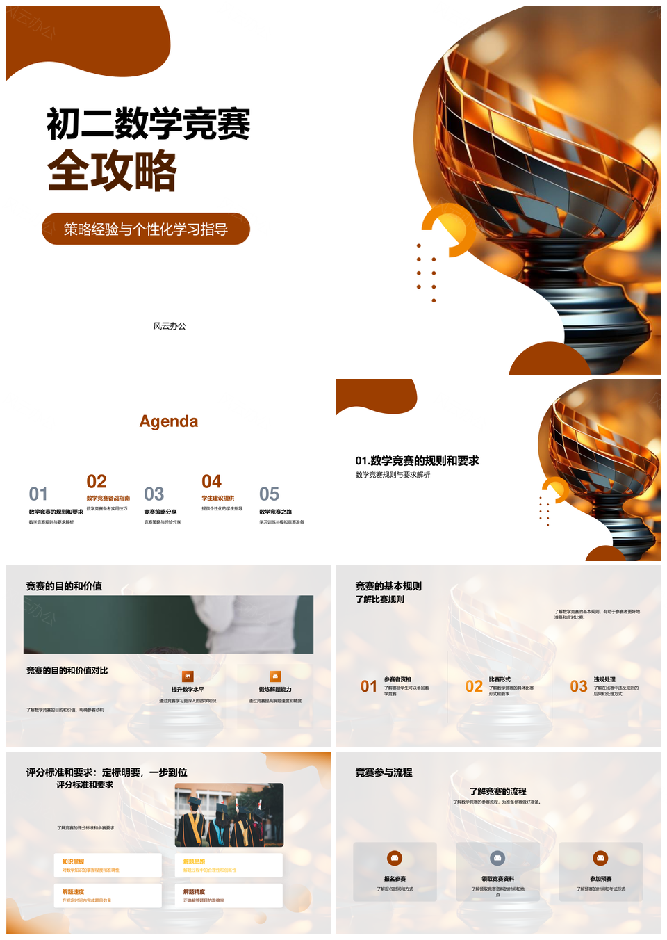 风云办公提供的初二数学竞赛策略经验与精进指南PPT模板,下载格式为pptx,一共24页,作品中文字及图均可以修改和编辑,图片更改请在作品中右键图片并更换,文字修改请直接点击文字进行修改。