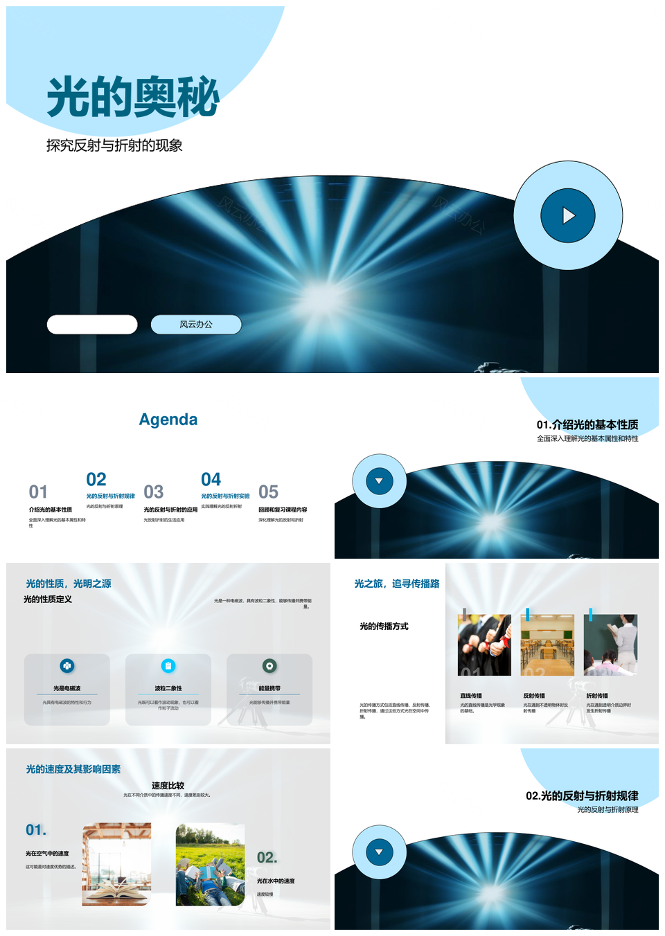 风云办公提供的光反射折射性质传播棱镜奥秘PPT模板,下载格式为pptx,一共23页,作品中文字及图均可以修改和编辑,图片更改请在作品中右键图片并更换,文字修改请直接点击文字进行修改。