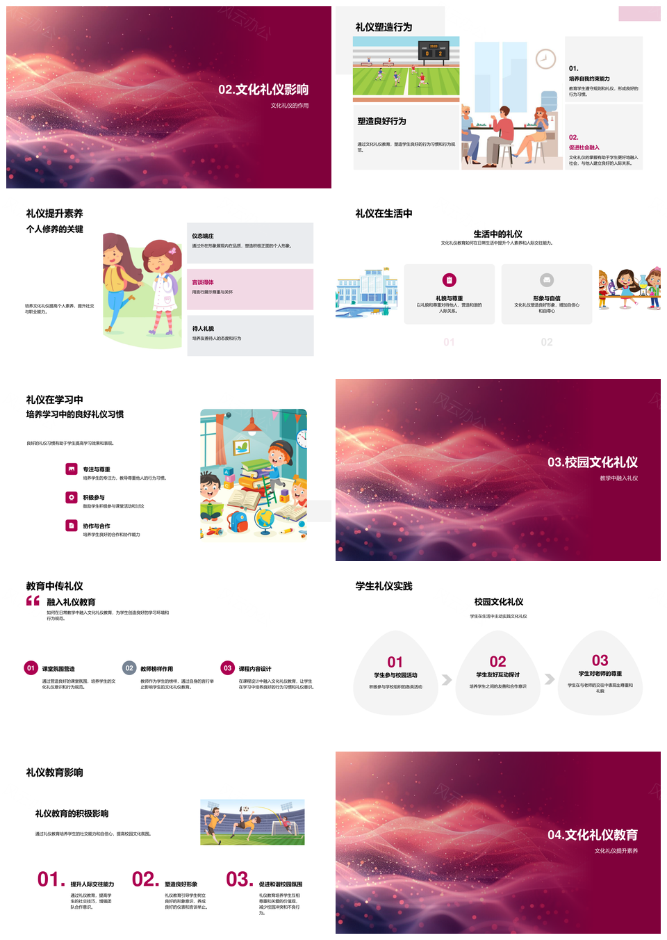 风云办公提供的文化礼仪教育提升素养校园教学应用PPT模板,下载格式为pptx,一共25页,作品中文字及图均可以修改和编辑,图片更改请在作品中右键图片并更换,文字修改请直接点击文字进行修改。