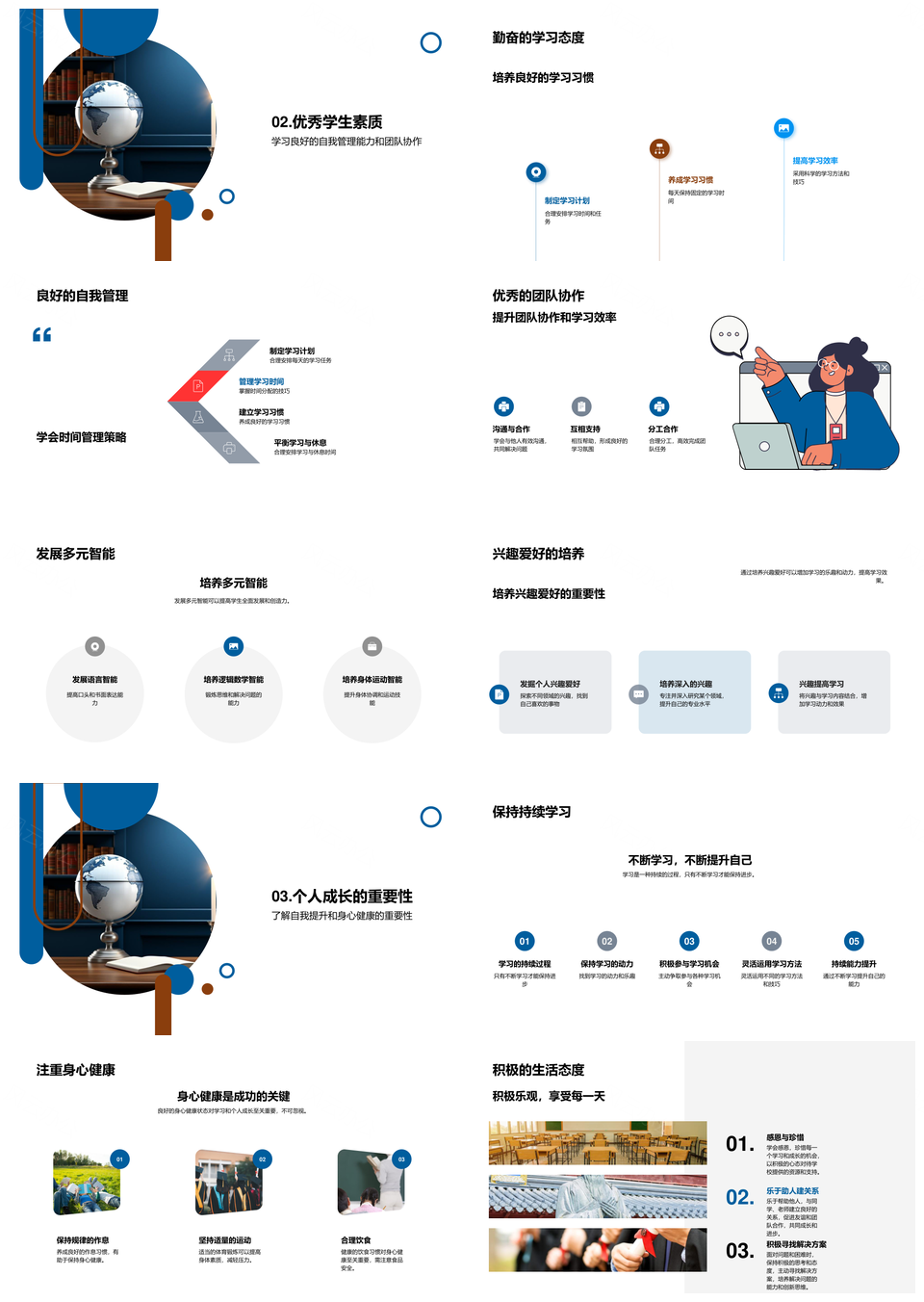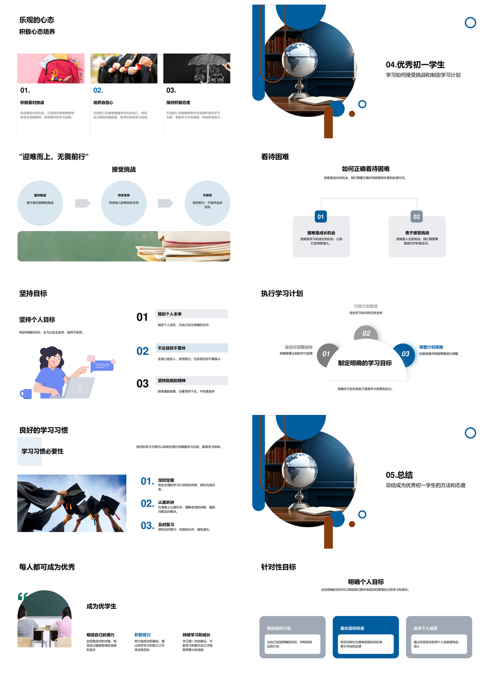 风云办公提供的初一学生全面发展学习典范方法PPT模板,下载格式为pptx,一共31页,作品中文字及图均可以修改和编辑,图片更改请在作品中右键图片并更换,文字修改请直接点击文字进行修改。