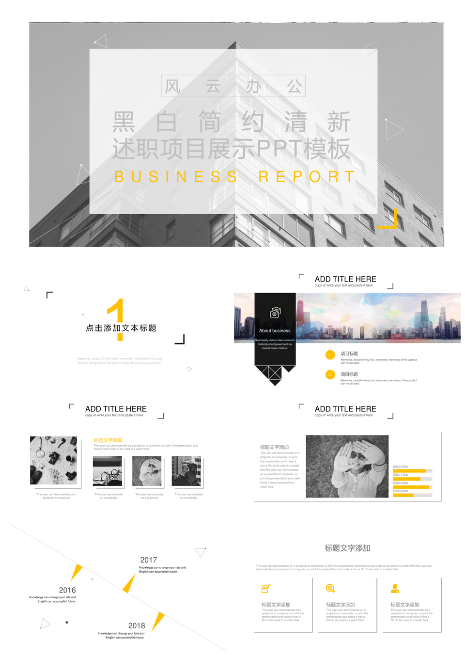 风云办公提供的黑白简约清新述职项目展示PPT模板,下载格式为pptx,一共20页,作品中文字及图均可以修改和编辑,图片更改请在作品中右键图片并更换,文字修改请直接点击文字进行修改。