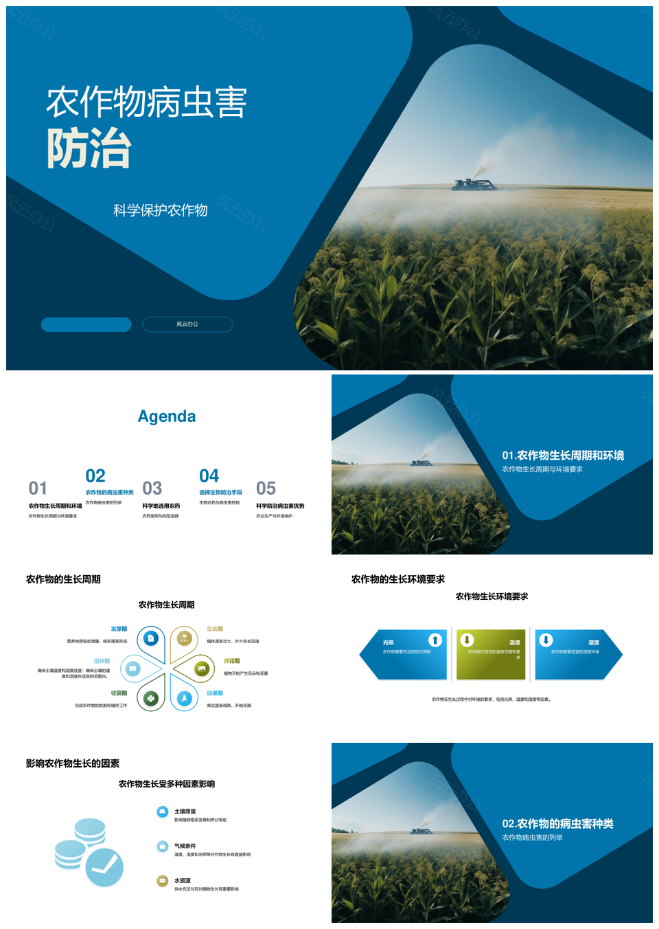 风云办公提供的农作物病虫害科学防治与生长环境管理PPT模板,下载格式为pptx,一共23页,作品中文字及图均可以修改和编辑,图片更改请在作品中右键图片并更换,文字修改请直接点击文字进行修改。