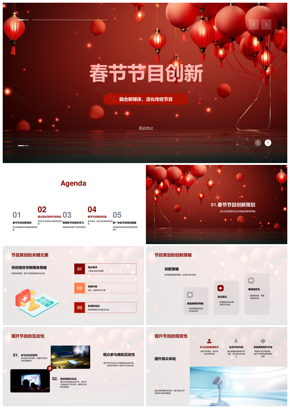 风云办公提供的春节节目双媒互动焕新烟花盛宴PPT模板,下载格式为pptx,一共28页,作品中文字及图均可以修改和编辑,图片更改请在作品中右键图片并更换,文字修改请直接点击文字进行修改。