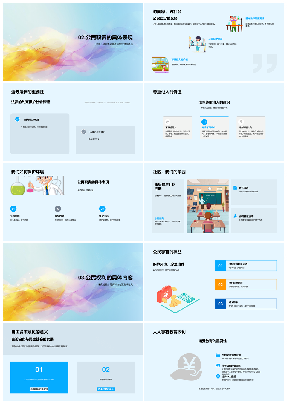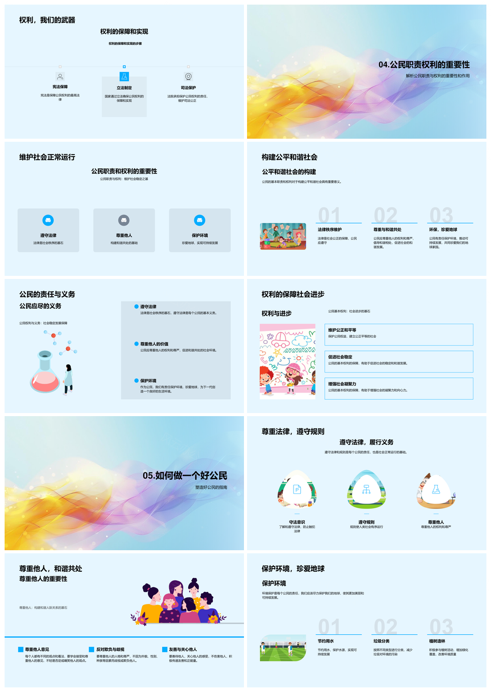 这是一张公民权利义务教育班会守法护境共建和谐PPT模板,包含公民权利、义务、教育、班会、守法、护境、共建、和谐等主题内容,也可用作班会守法护境共建和谐、公民权利义务教育班会守法、义务教育班会守法护境、公民权利班会守法护境、守法护境共建和谐、义务教育班会守法、公民权利班会守法、班会守法共建和谐、义务教育守法护境、公民权利义务教育班会、班会护境共建和谐、公民权利守法护境、公民权利义务教育、班会守法、守法护境等PPT场景使用。 风云办公提供的公民权利义务教育班会守法护境共建和谐PPT模板,下载格式为pptx,一共30页,作品中文字及图均可以修改和编辑,图片更改请在作品中右键图片并更换,文字修改请直接点击文字进行修改。