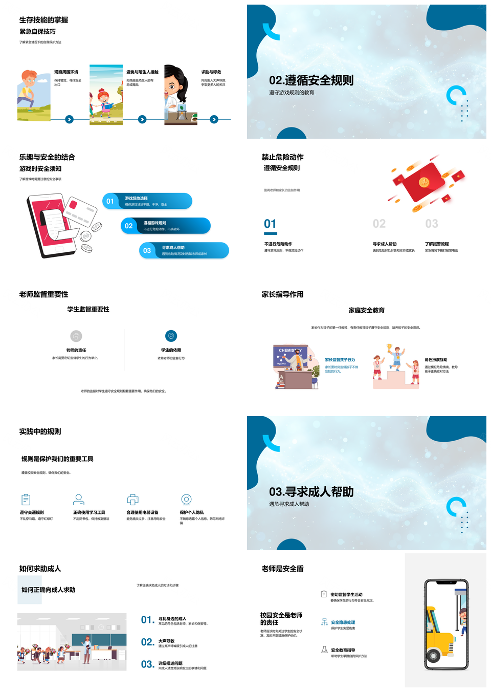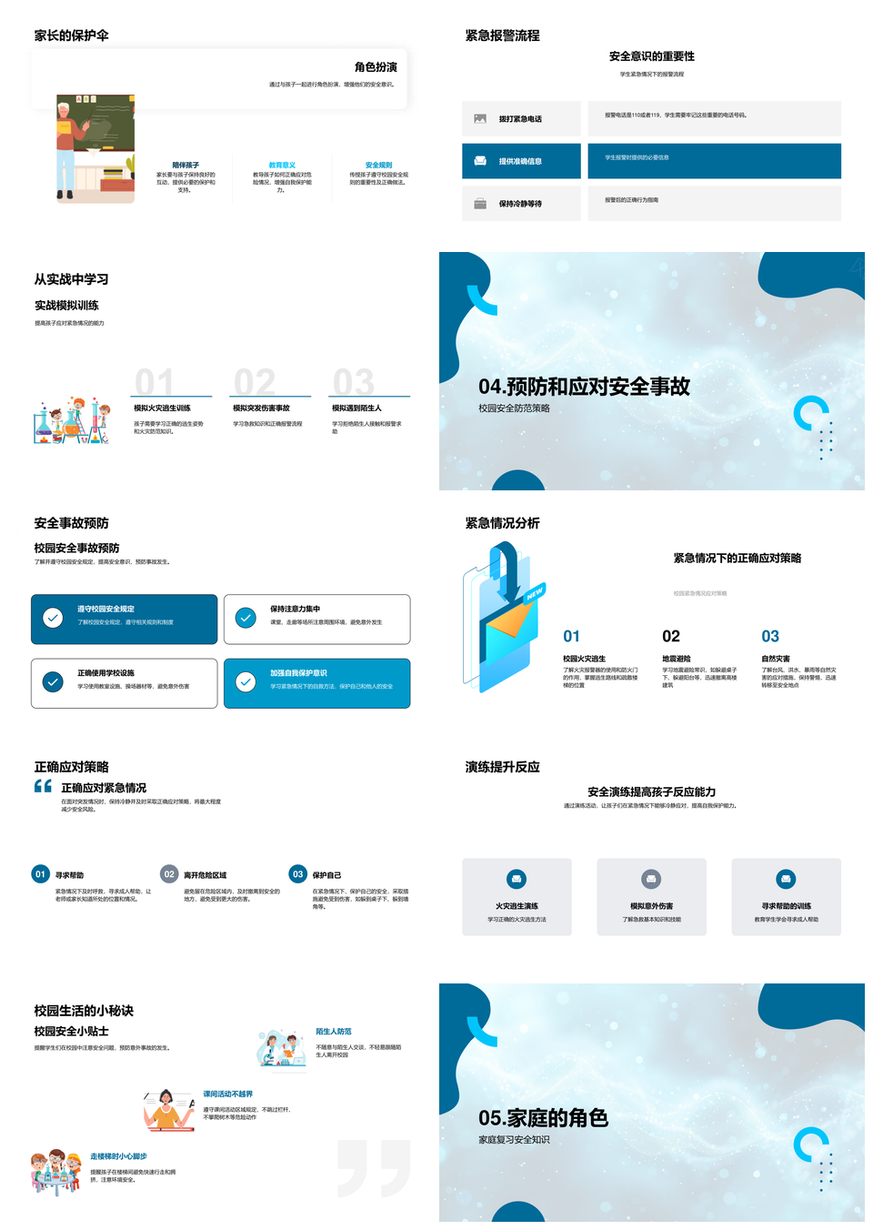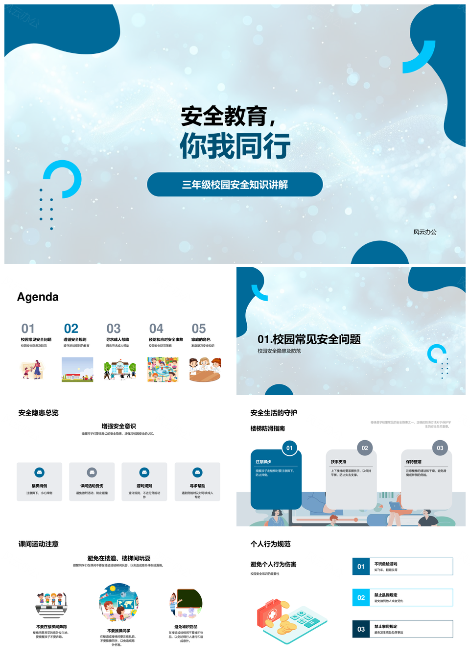 这是一张校园安全行为规范与自保技巧师生家长共护PPT模板,包含校园、安全、行为规范、自保、技巧、师生、家长、共护等主题内容,也可用作校园安全行为规范、校园安全自保技巧、安全行为规范自保、行为规范自保技巧、规范自保技巧师生、自保技巧师生家长、师生家长共护、校园安全、安全行为、行为规范、规范自保、自保技巧、技巧师生、师生家长、家长共护等PPT场景使用。 风云办公提供的校园安全行为规范与自保技巧师生家长共护PPT模板,下载格式为pptx,一共33页,作品中文字及图均可以修改和编辑,图片更改请在作品中右键图片并更换,文字修改请直接点击文字进行修改。