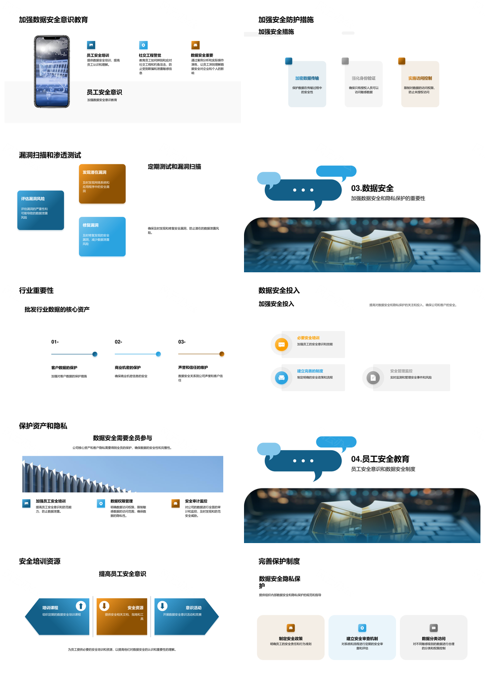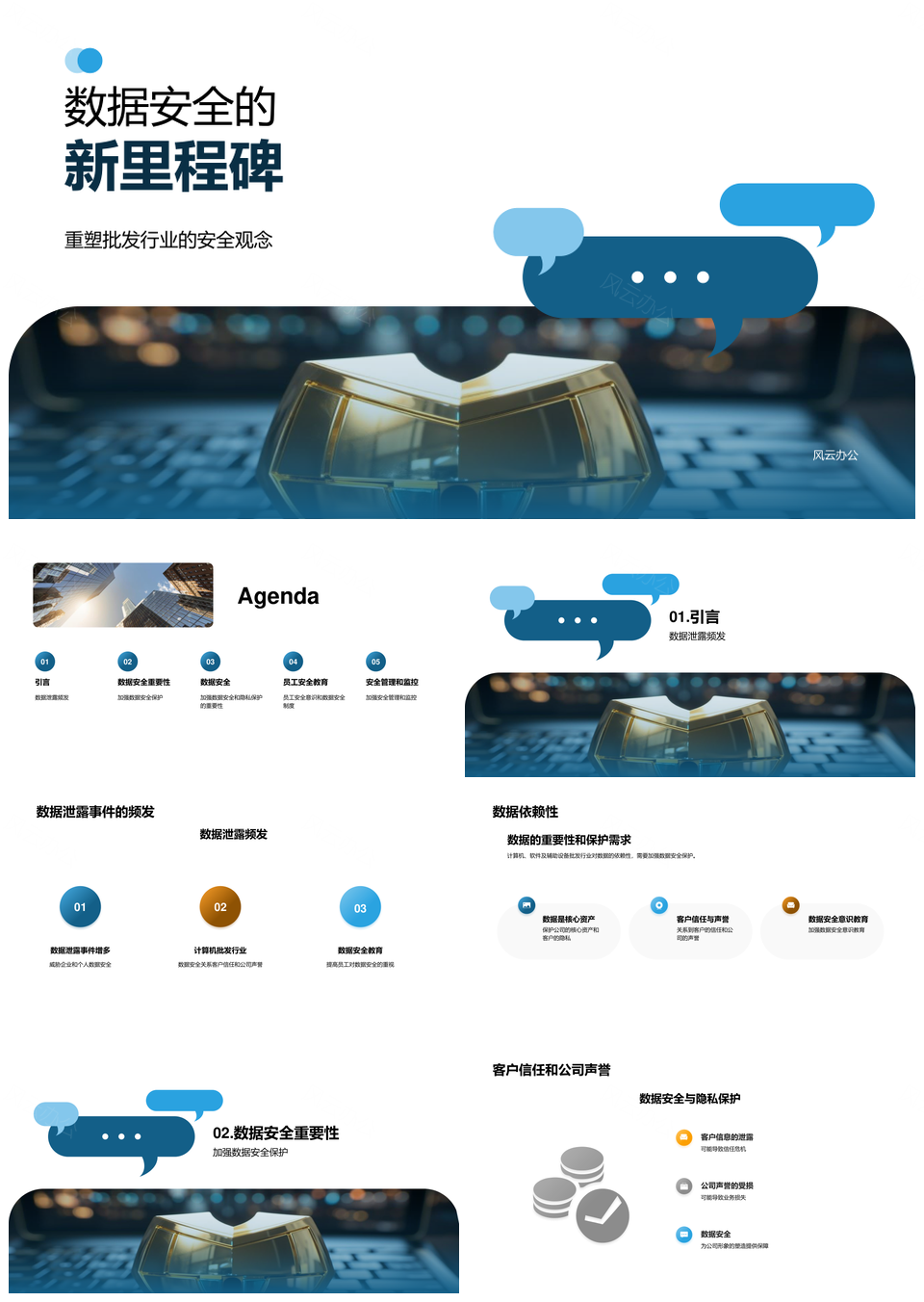 这是一张2025批发业计算机软硬件数据安全锁防泄护信任声誉PPT模板,包含2025、批发业、计算机、软硬件、数据、安全锁、防泄、护、信任、声誉等主题内容,也可用作2025批发业计算机软硬件、批发业计算机软硬件数据安全、计算机软硬件数据安全防泄、软硬件数据安全防泄信任、数据安全防泄信任声誉、2025批发业计算机、批发业计算机软硬件、计算机软硬件数据安全、软硬件数据安全防泄、数据安全防泄信任、防泄信任声誉、2025批发业、批发业计算机、计算机软硬件、软硬件数据安全等PPT场景使用。 风云办公提供的2025批发业计算机软硬件数据安全锁防泄护信任声誉PPT模板,下载格式为pptx,一共20页,作品中文字及图均可以修改和编辑,图片更改请在作品中右键图片并更换,文字修改请直接点击文字进行修改。