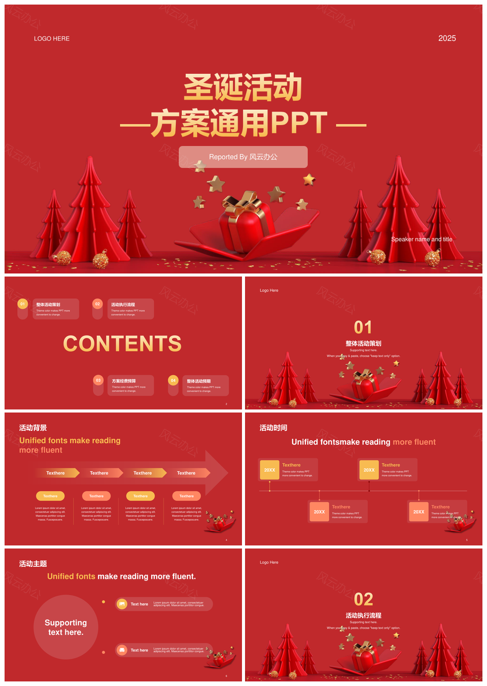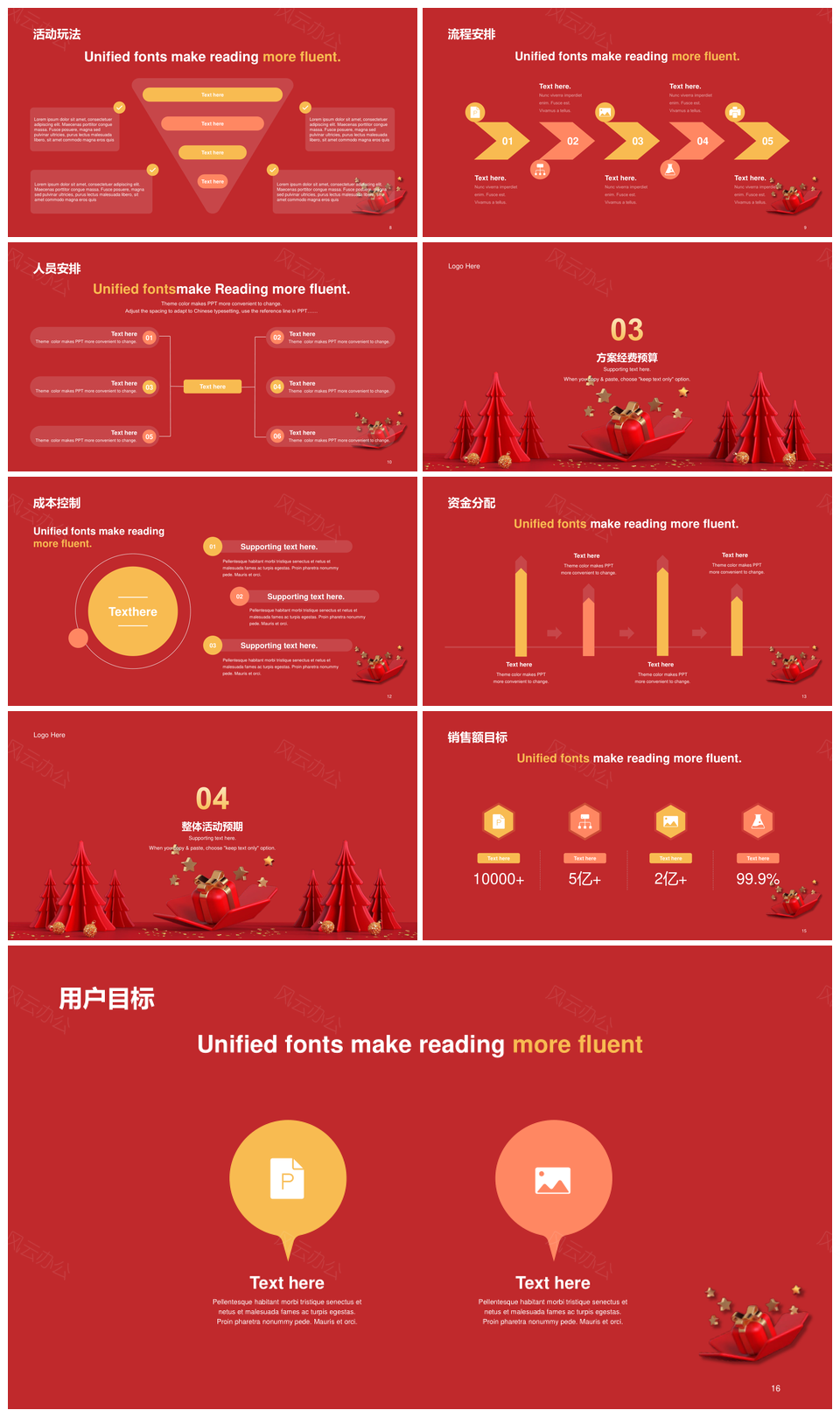 风云办公提供的红色圣诞树礼物创意酷炫营销方案PPT模板,下载格式为pptx,一共17页,作品中文字及图均可以修改和编辑,图片更改请在作品中右键图片并更换,文字修改请直接点击文字进行修改。