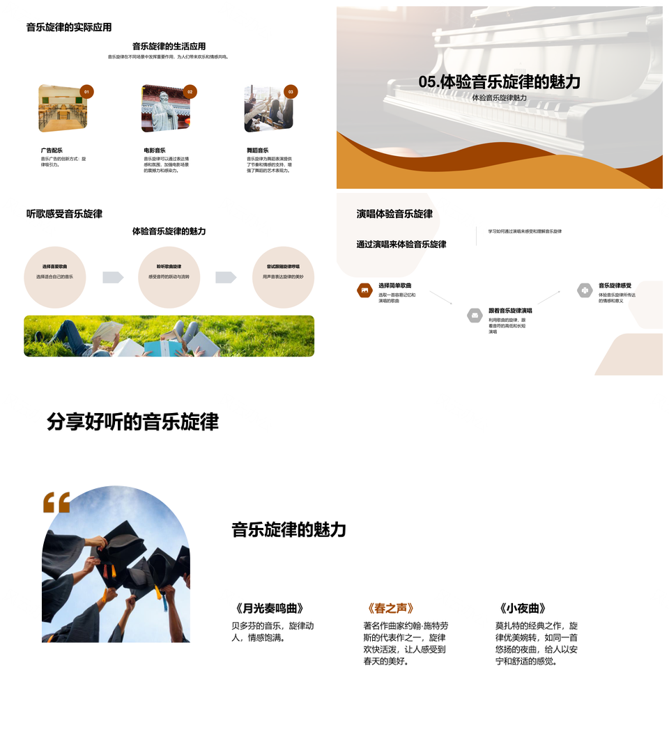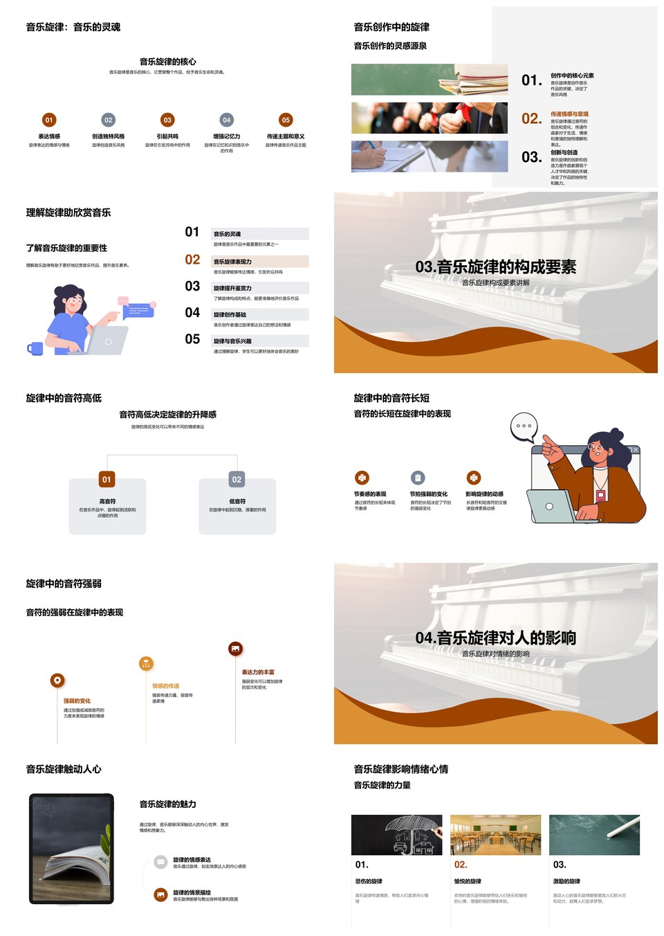 这是一张音乐教师理论实践旋律创作欣赏情绪音符PPT模板,包含音乐教师、理论、实践、旋律、创作、欣赏、情绪、音符等主题内容,也可用作音乐教师理论实践、理论实践旋律创作、旋律创作欣赏情绪、创作欣赏情绪音符、音乐教师理论、教师理论实践、理论实践旋律、实践旋律创作、旋律创作欣赏、创作欣赏情绪、欣赏情绪音符、音乐教师、理论实践、旋律创作、欣赏情绪等PPT场景使用。 风云办公提供的音乐教师理论实践旋律创作欣赏情绪音符PPT模板,下载格式为pptx,一共23页,作品中文字及图均可以修改和编辑,图片更改请在作品中右键图片并更换,文字修改请直接点击文字进行修改。