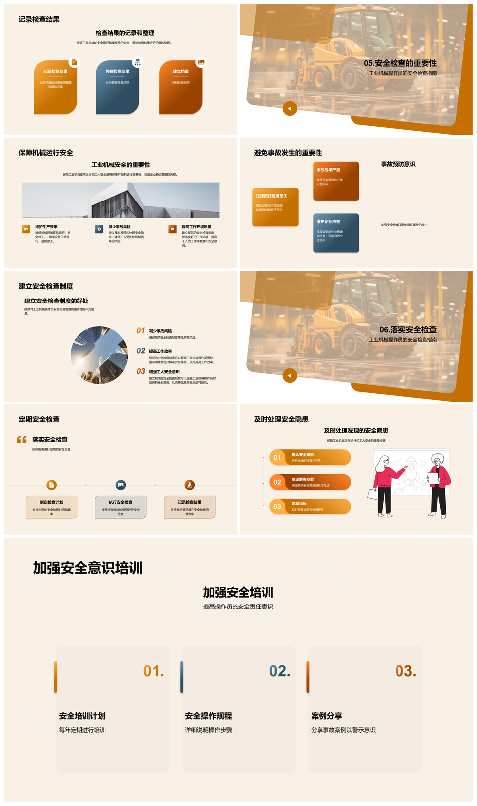 这是一张工业机械安全检查规范步骤与设备外观声音隐患PPT模板,包含工业机械、安全检查、规范步骤、设备外观、声音隐患等主题内容,也可用作工业机械安全检查规范步骤、安全检查规范步骤设备外观、检查规范步骤设备外观声音隐患、工业机械安全检查设备外观声音隐患、工业机械设备外观声音隐患、检查规范步骤设备外观、规范步骤设备外观声音隐患、安全检查设备外观声音隐患、工业机械安全检查设备外观、安全检查规范步骤、安全检查设备外观、工业机械安全检查、设备外观声音隐患、检查规范步骤、规范步骤设备外观等PPT场景使用。 风云办公提供的工业机械安全检查规范步骤与设备外观声音隐患PPT模板,下载格式为pptx,一共27页,作品中文字及图均可以修改和编辑,图片更改请在作品中右键图片并更换,文字修改请直接点击文字进行修改。