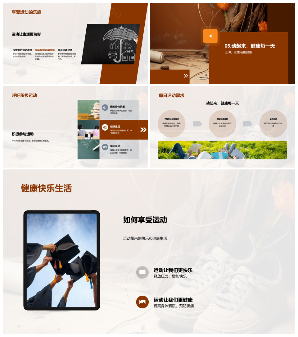 高中体育理论教学运动装备健康活力生活PPT模板推荐