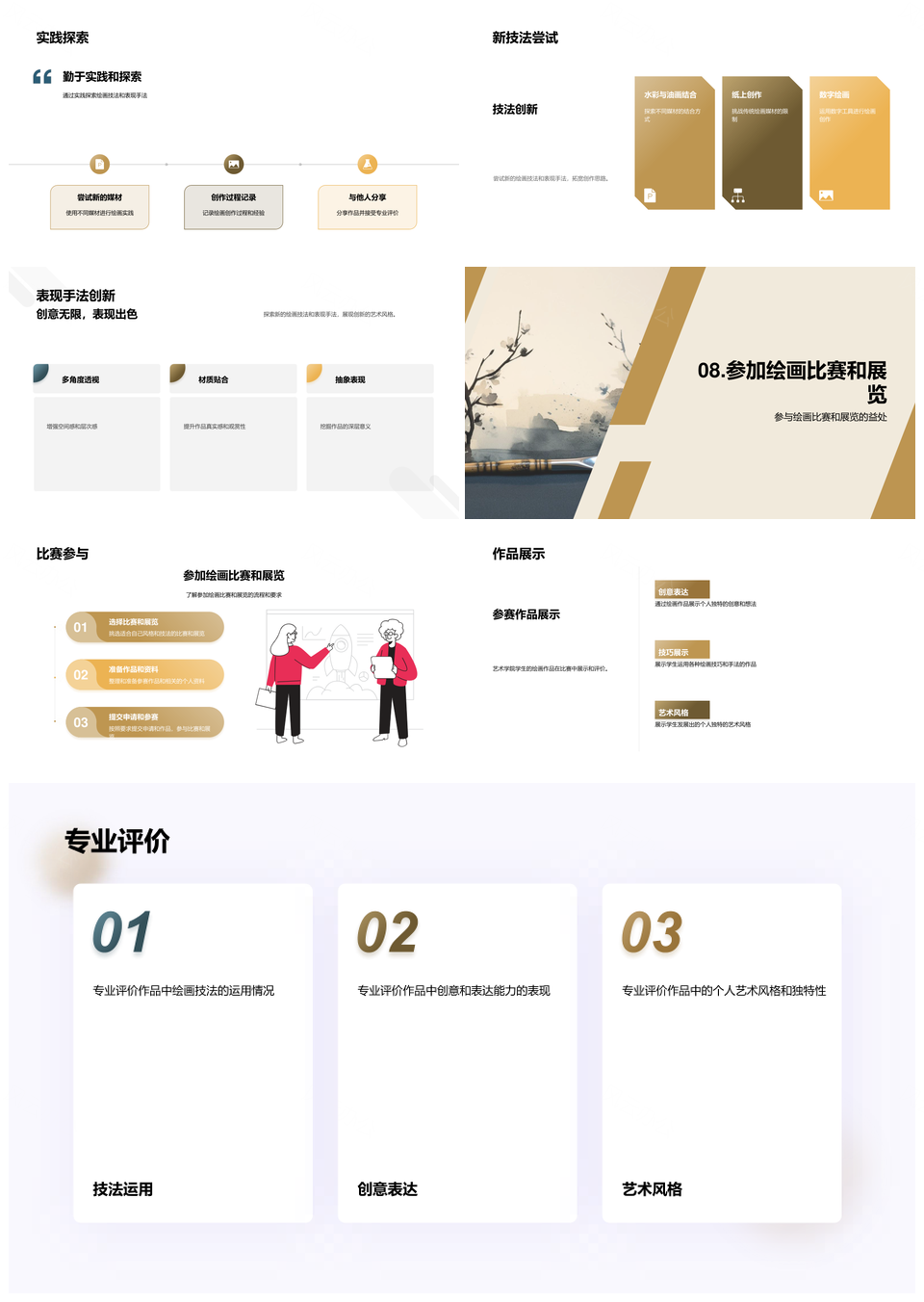 这是一张艺术学院绘画技法媒材画笔分享交流PPT模板,包含艺术学院、绘画技法、媒材、画笔、分享、交流等主题内容,也可用作艺术学院绘画技法媒材、艺术学院绘画技法画笔、艺术学院绘画技法分享、艺术学院绘画技法交流、艺术学院绘画媒材画笔、艺术学院绘画媒材分享、艺术学院绘画媒材交流、艺术学院绘画画笔分享、艺术学院绘画画笔交流、艺术学院绘画分享交流、绘画技法媒材画笔、技法媒材画笔分享、媒材画笔分享交流、绘画技法分享交流、技法媒材交流等PPT场景使用。