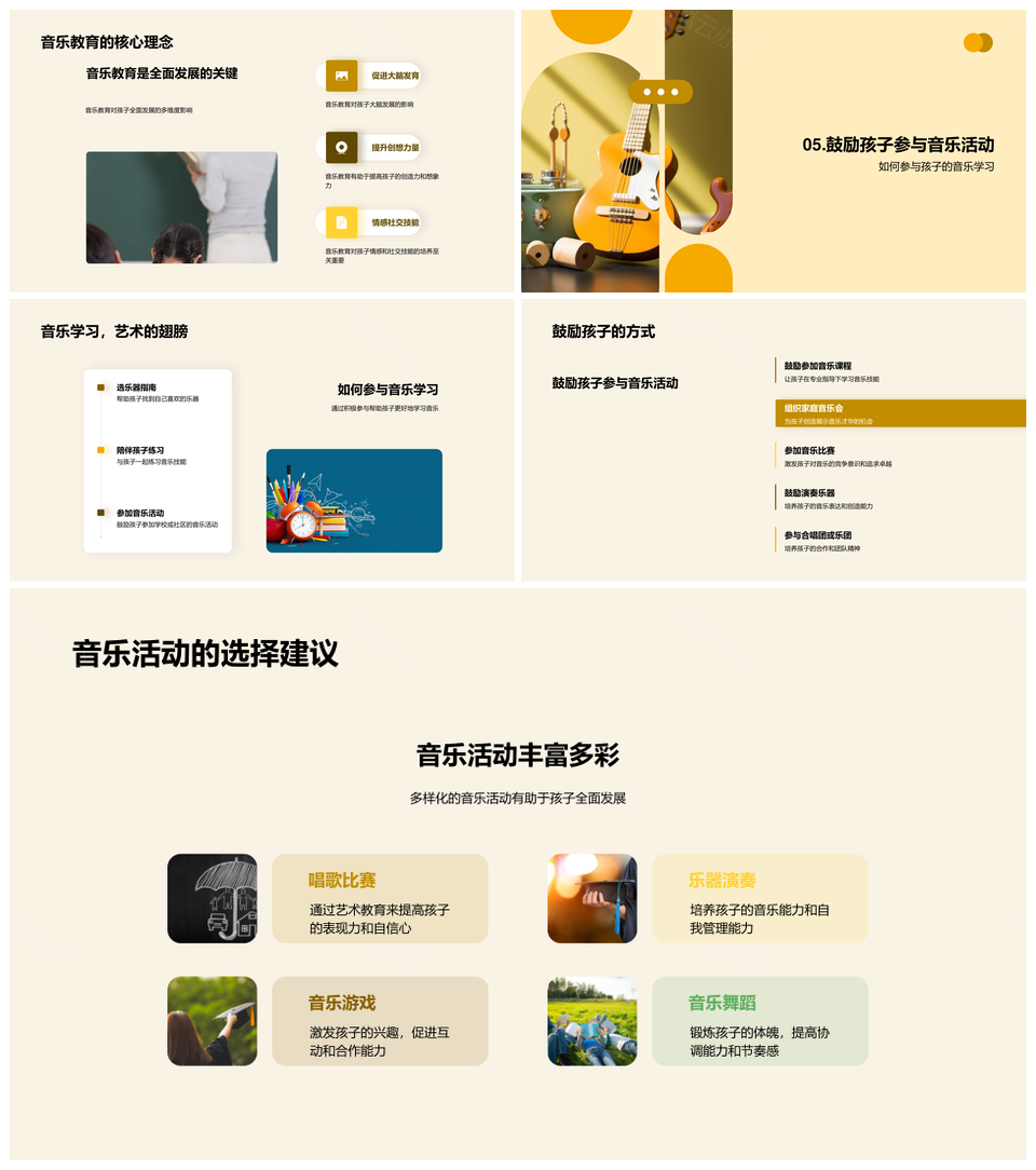 这是一张音乐教育启智育情培创协作促成长PPT模板,包含音乐教育、启智、育情、培创、协作、促成长等主题内容,也可用作音乐教育启智育情培创协作、音乐教育启智育情、教育启智育情培创协作、启智育情培创协作成长、音乐教育启智育、教育启智育情培创、启智育情培创协作、育情培创协作成长、音乐教育启智、教育启智育情、启智育情培创、育情培创协作、培创协作成长、音乐教育、教育启智、启智育情等PPT场景使用。