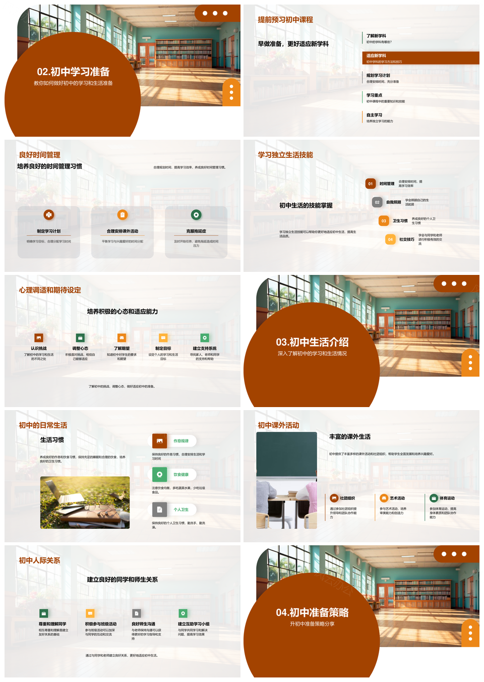初中生活策略时间管理独立技能小学差异PPT模板推荐