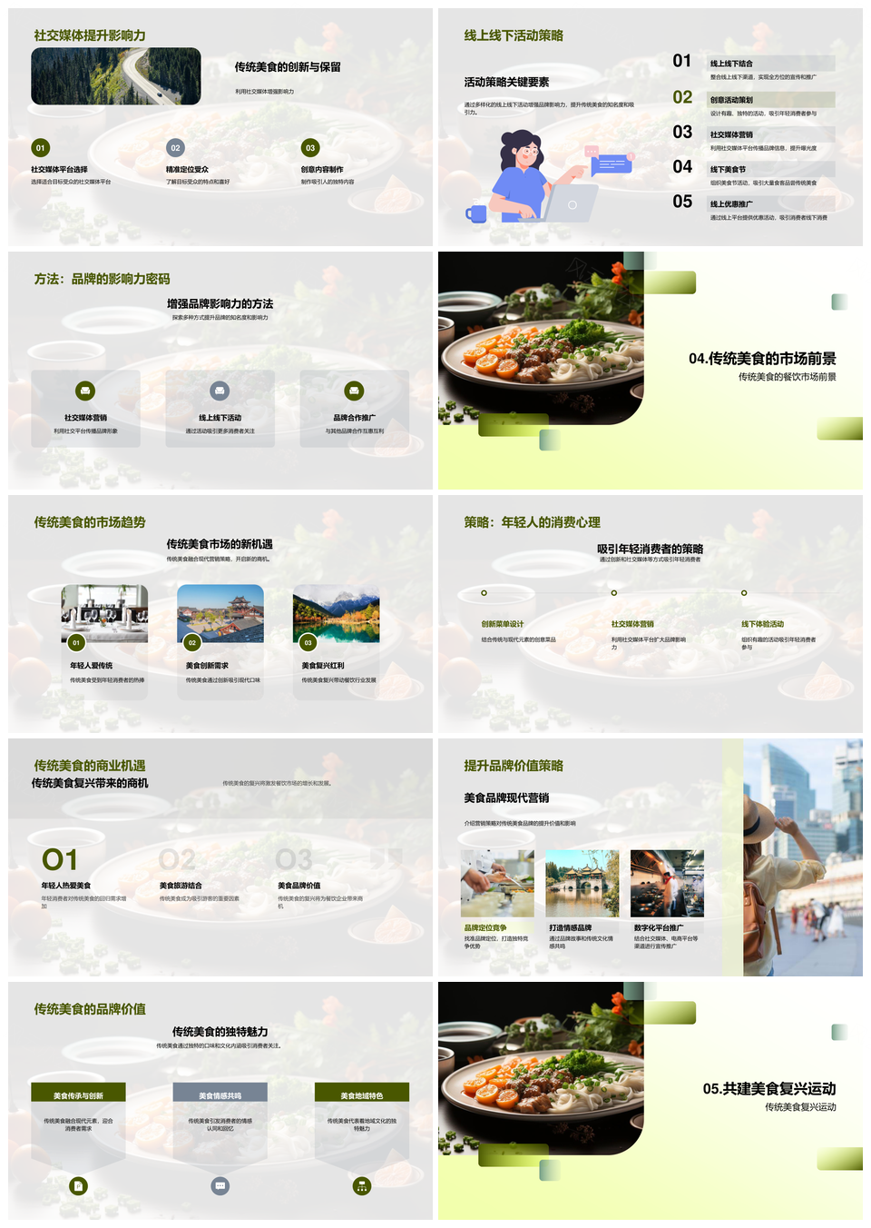这是一张传统中餐现代融合创新策略PPT模板,包含传统中餐、现代、融合、创新、策略等主题内容,也可用作传统中餐现代融合、中餐现代融合创新、现代融合创新策略、中餐现代融合、现代融合创新、融合创新策略、传统中餐融合、传统现代融合、中餐融合创新、传统中餐、现代融合、融合创新、创新策略、中餐现代、中餐融合等PPT场景使用。 风云办公提供的传统中餐现代融合创新策略PPT模板,下载格式为pptx,一共33页,作品中文字及图均可以修改和编辑,图片更改请在作品中右键图片并更换,文字修改请直接点击文字进行修改。