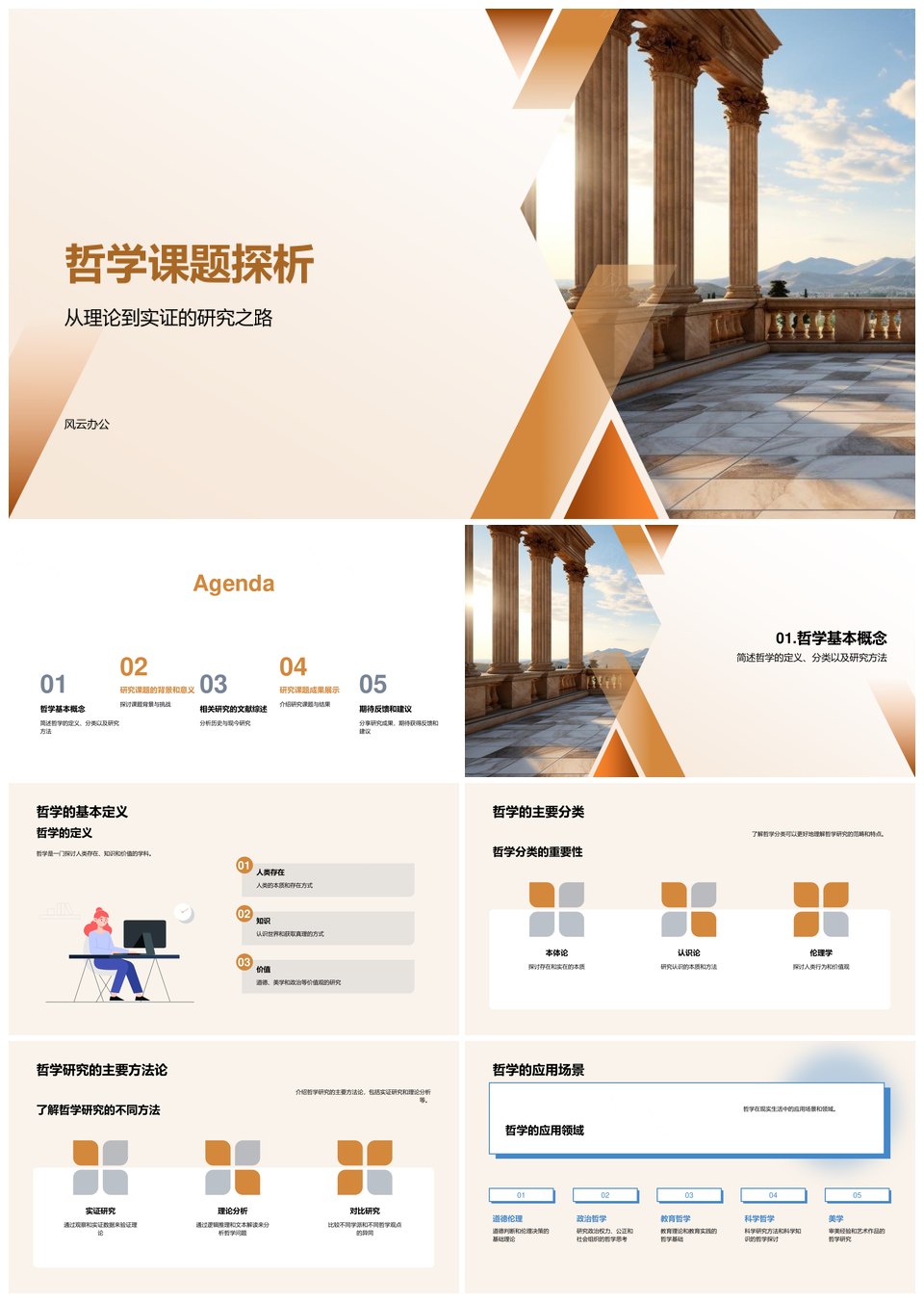 风云办公提供的哲学课题理论实证研究与答辩探析PPT模板,下载格式为pptx,一共24页,作品中文字及图均可以修改和编辑,图片更改请在作品中右键图片并更换,文字修改请直接点击文字进行修改。