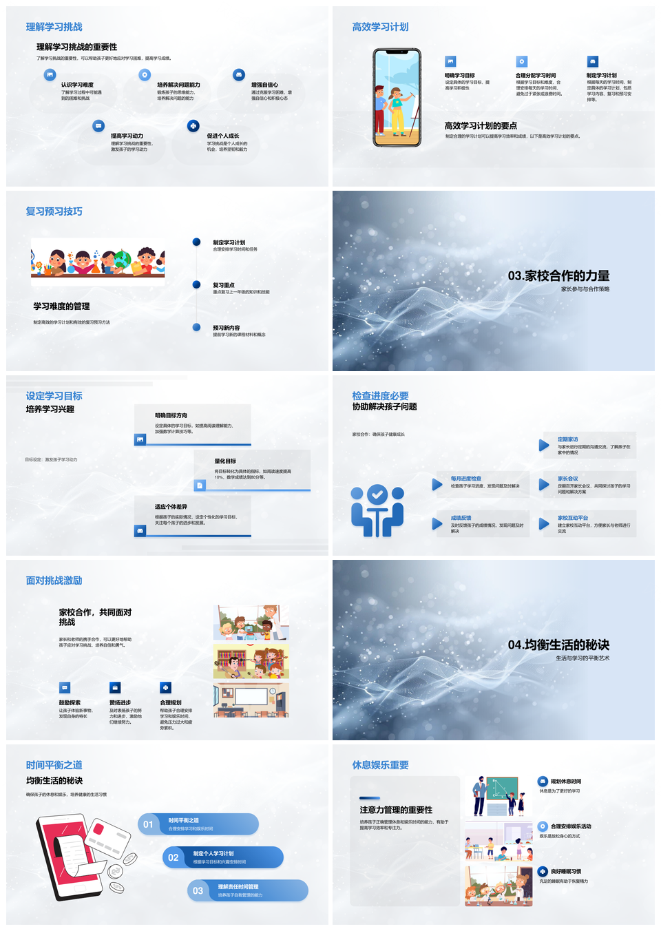 这是一张四年级学习启动家长助力高效计划进度检查劳逸结合PPT模板,包含四年级、学习启动、家长助力、高效计划、进度检查、劳逸结合等主题内容,也可用作四年级学习启动家长、学习启动家长助力、启动家长助力高效、家长助力高效计划、高效计划进度检查、计划进度检查劳逸结合、四年级学习启动、学习启动家长、启动家长助力、家长助力高效、高效计划进度、计划进度检查、进度检查劳逸结合、家长助力、高效计划等PPT场景使用。 风云办公提供的四年级学习启动家长助力高效计划进度检查劳逸结合PPT模板,下载格式为pptx,一共23页,作品中文字及图均可以修改和编辑,图片更改请在作品中右键图片并更换,文字修改请直接点击文字进行修改。