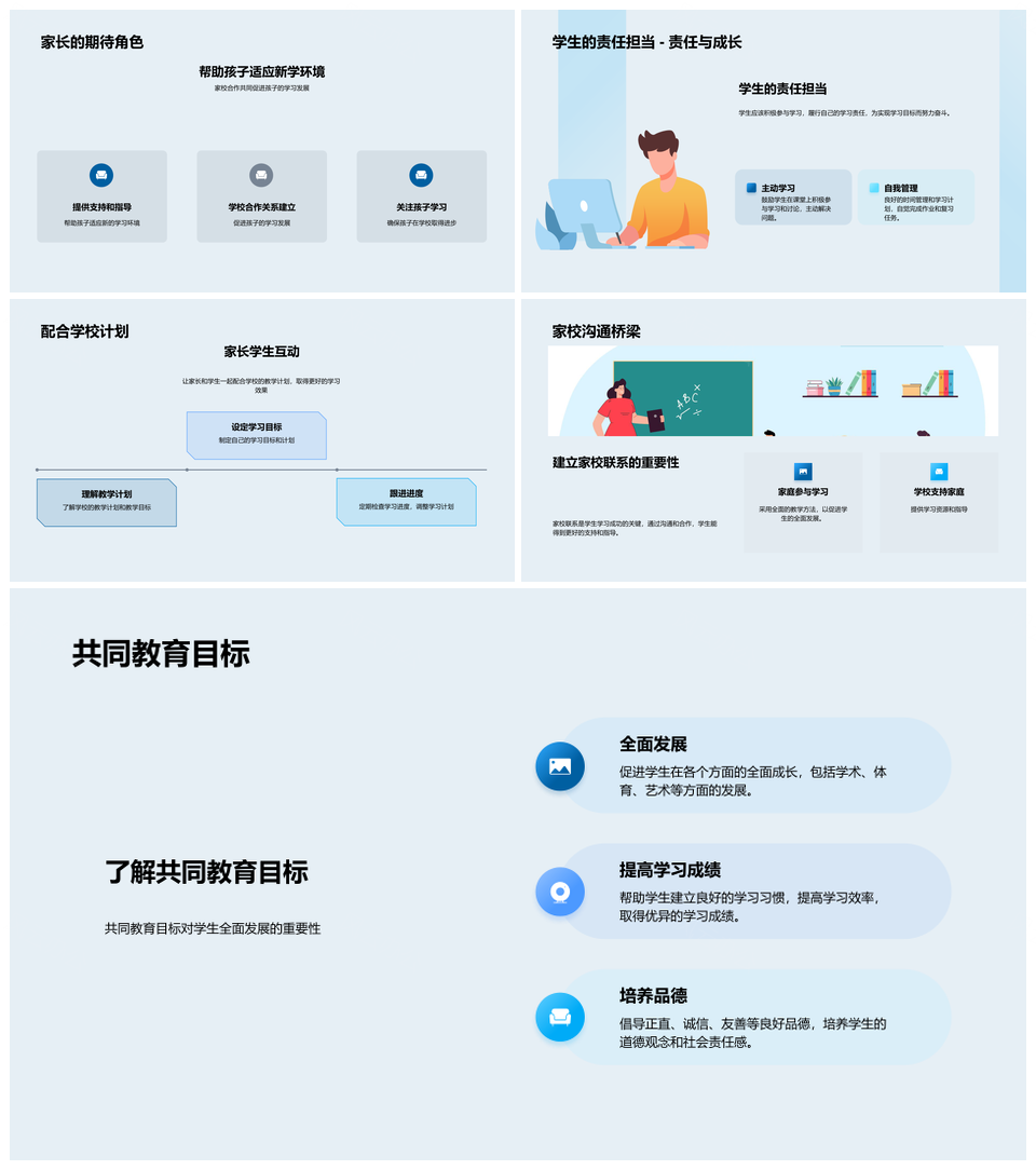 这是一张新学期教学策略计划目标开学第一课家校互动效率PPT模板,包含新学期、教学策略、计划、目标、开学、第一课、家校互动、效率等主题内容,也可用作新学期教学策略计划目标、教学策略计划目标开学第一课、计划目标开学第一课家校互动、目标开学第一课家校互动效率、新学期教学策略计划、教学策略计划目标、计划目标开学第一课、目标开学第一课家校互动、开学第一课家校互动效率、新学期教学策略、教学策略计划、计划目标、目标开学第一课、开学第一课家校互动、家校互动效率等PPT场景使用。 风云办公提供的新学期教学策略计划目标开学第一课家校互动效率PPT模板,下载格式为pptx,一共33页,作品中文字及图均可以修改和编辑,图片更改请在作品中右键图片并更换,文字修改请直接点击文字进行修改。