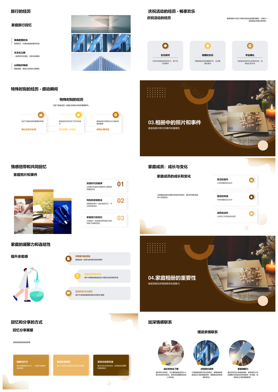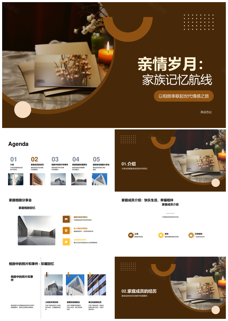 风云办公提供的家庭相册共筑亲情回忆永存PPT模板,下载格式为pptx,一共23页,作品中文字及图均可以修改和编辑,图片更改请在作品中右键图片并更换,文字修改请直接点击文字进行修改。