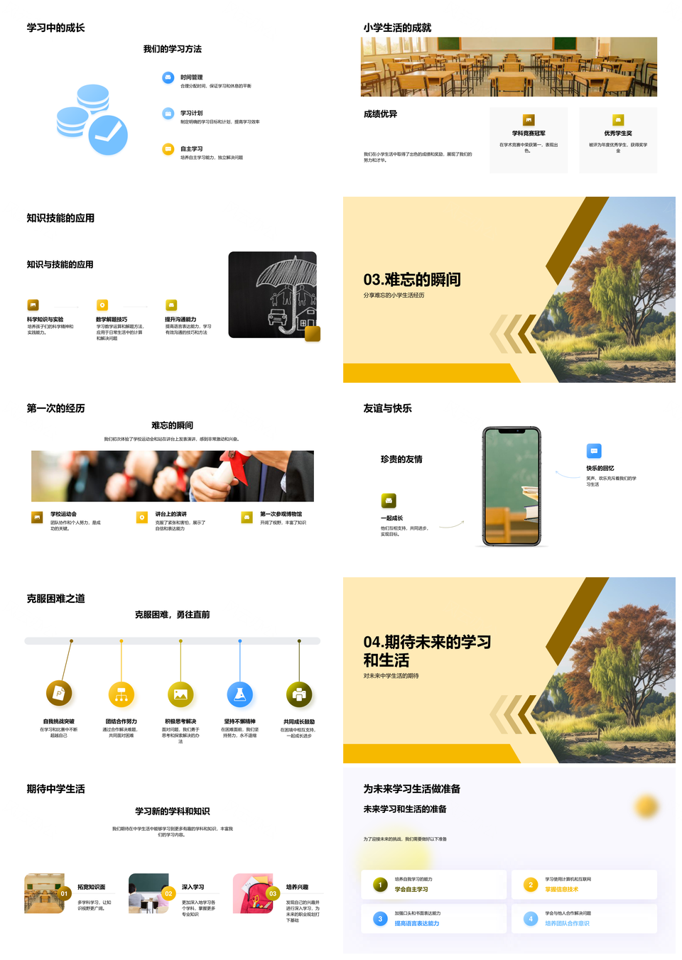 童年在校求知成长点滴PPT模板