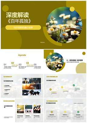 马尔克斯百年孤独魔幻解析家族宿命时间循环生命PPT模板
