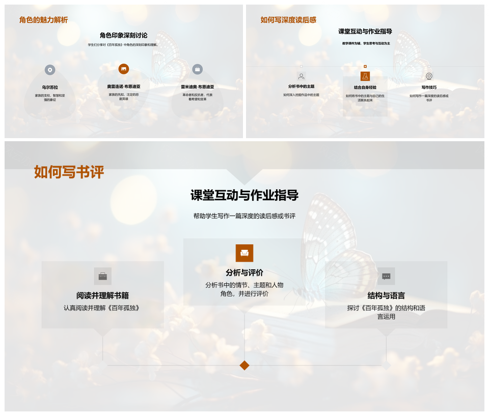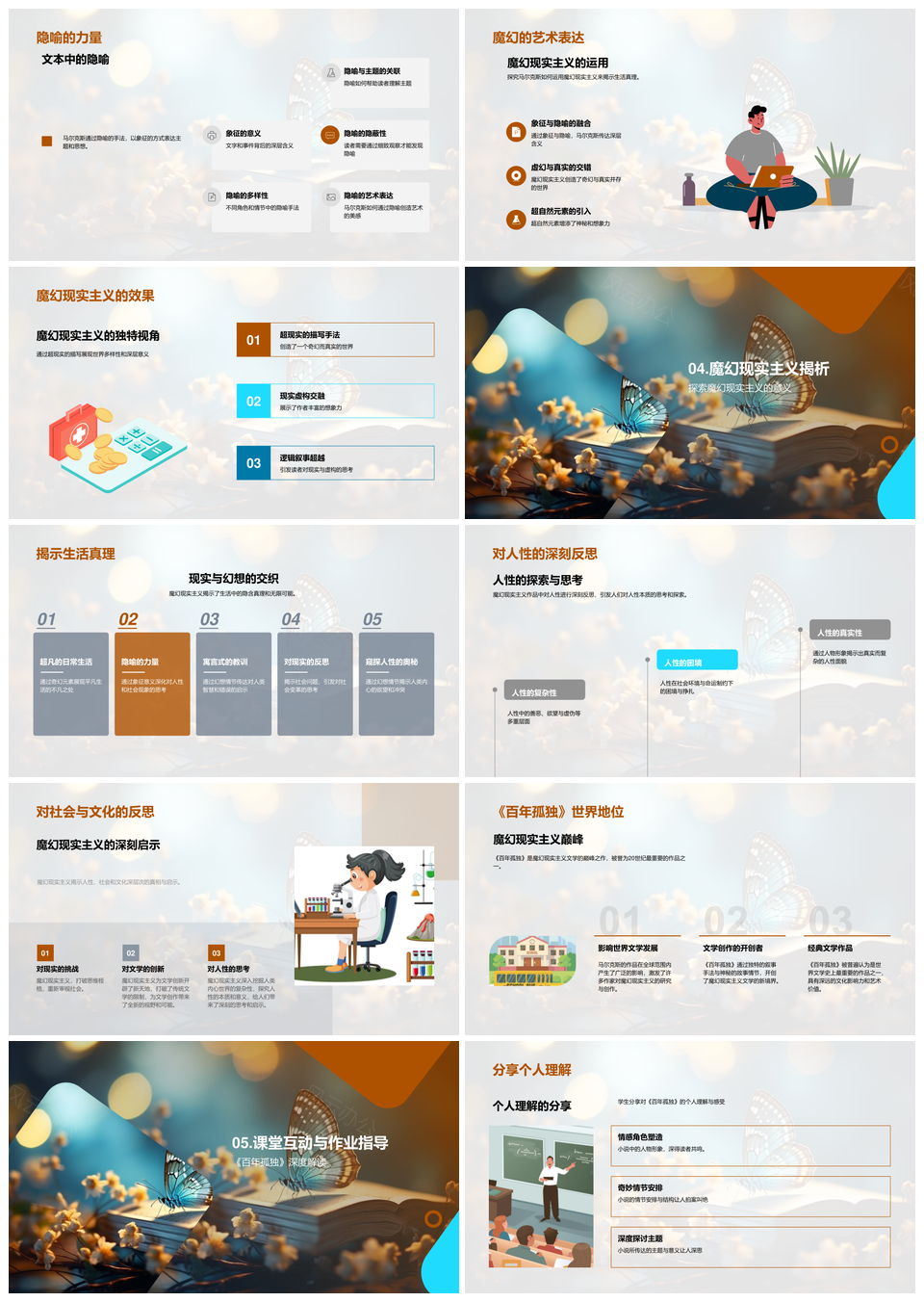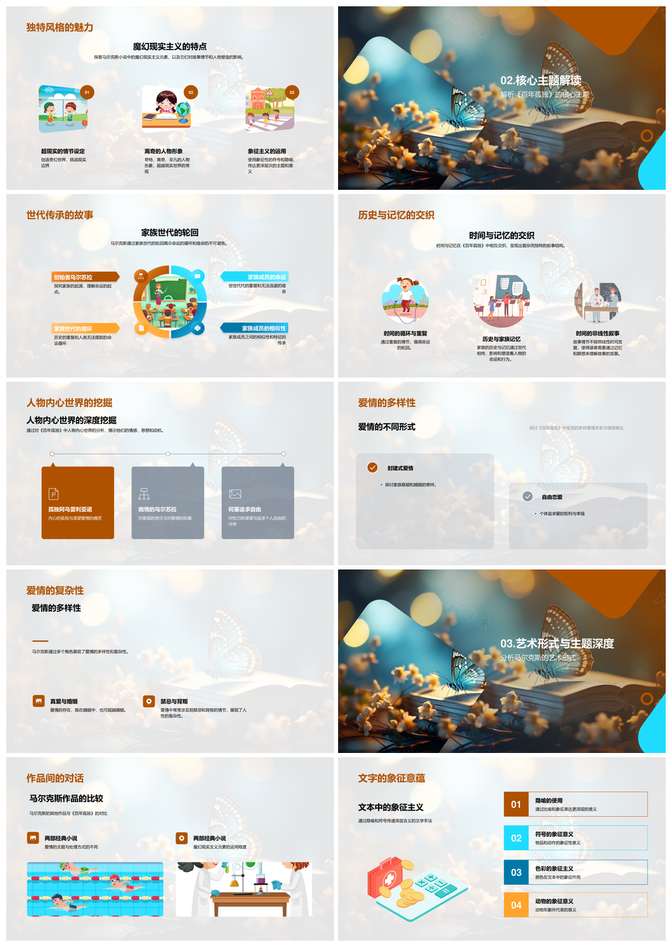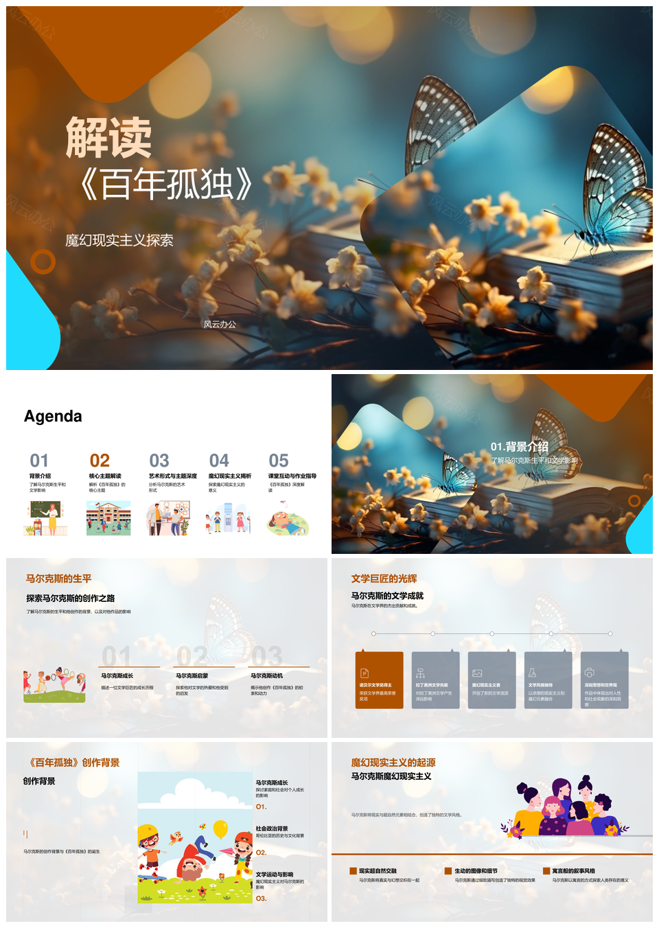 这是一张马尔克斯百年孤独魔幻现实家族轮回时间记忆交织PPT模板,包含马尔克斯、百年孤独、魔幻、现实、家族、轮回、时间、记忆、交织等主题内容,也可用作马尔克斯百年孤独魔幻现实家族轮回时间记忆交织、百年孤独魔幻现实家族轮回时间记忆、魔幻现实家族轮回时间记忆交织、百年孤独魔幻现实家族轮回、马尔克斯百年孤独魔幻现实、魔幻现实家族轮回时间、家族轮回时间记忆交织、百年孤独家族轮回时间、马尔克斯魔幻现实家族、百年孤独魔幻现实家族、家族轮回时间记忆、马尔克斯家族轮回时间、魔幻现实时间记忆交织、百年孤独家族轮回、轮回时间记忆交织等PPT场景使用。 风云办公提供的马尔克斯百年孤独魔幻现实家族轮回时间记忆交织PPT模板,下载格式为pptx,一共31页,作品中文字及图均可以修改和编辑,图片更改请在作品中右键图片并更换,文字修改请直接点击文字进行修改。