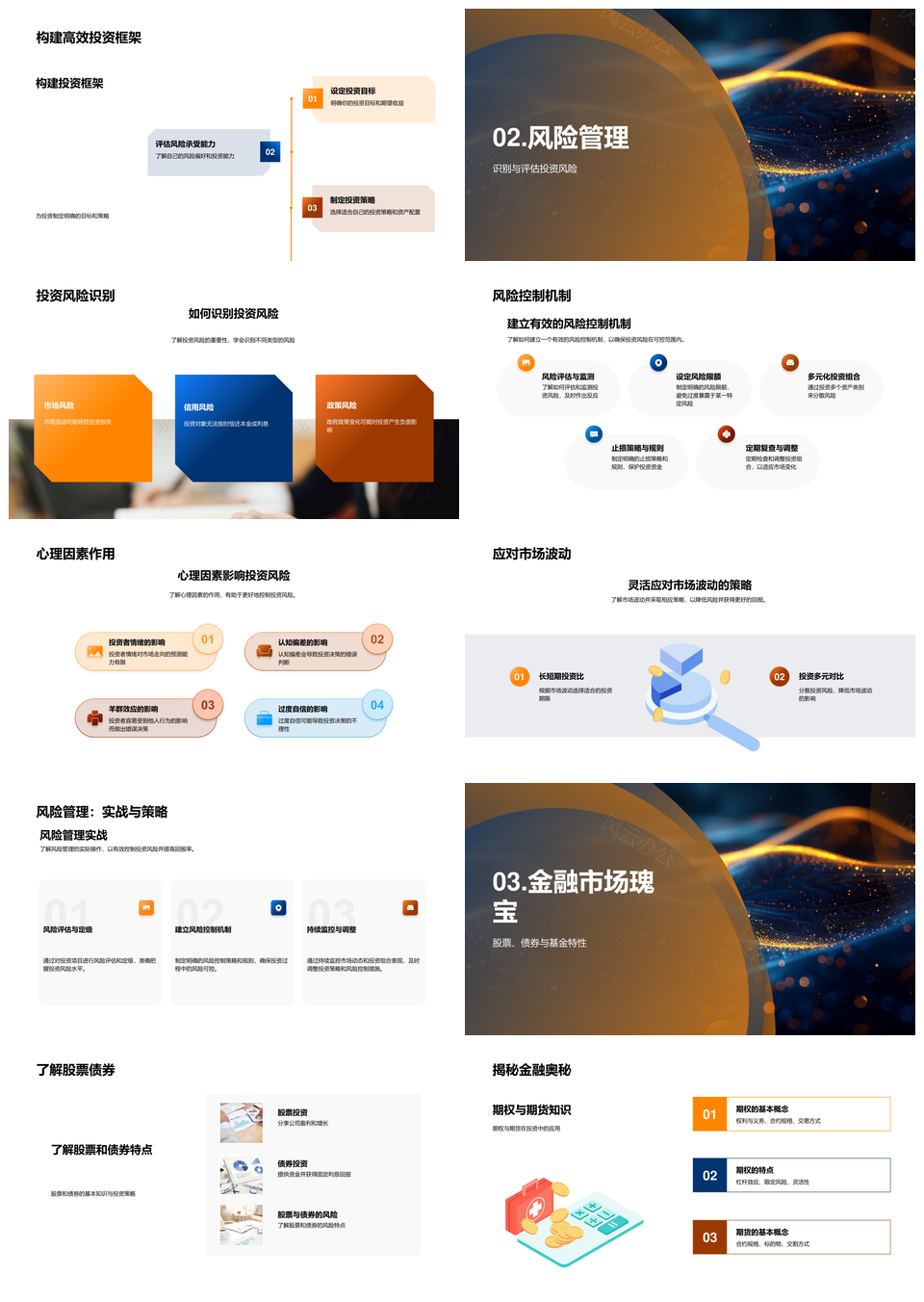 投资策略风险管理市场分析长短期股债期权期货风险回报PPT模板