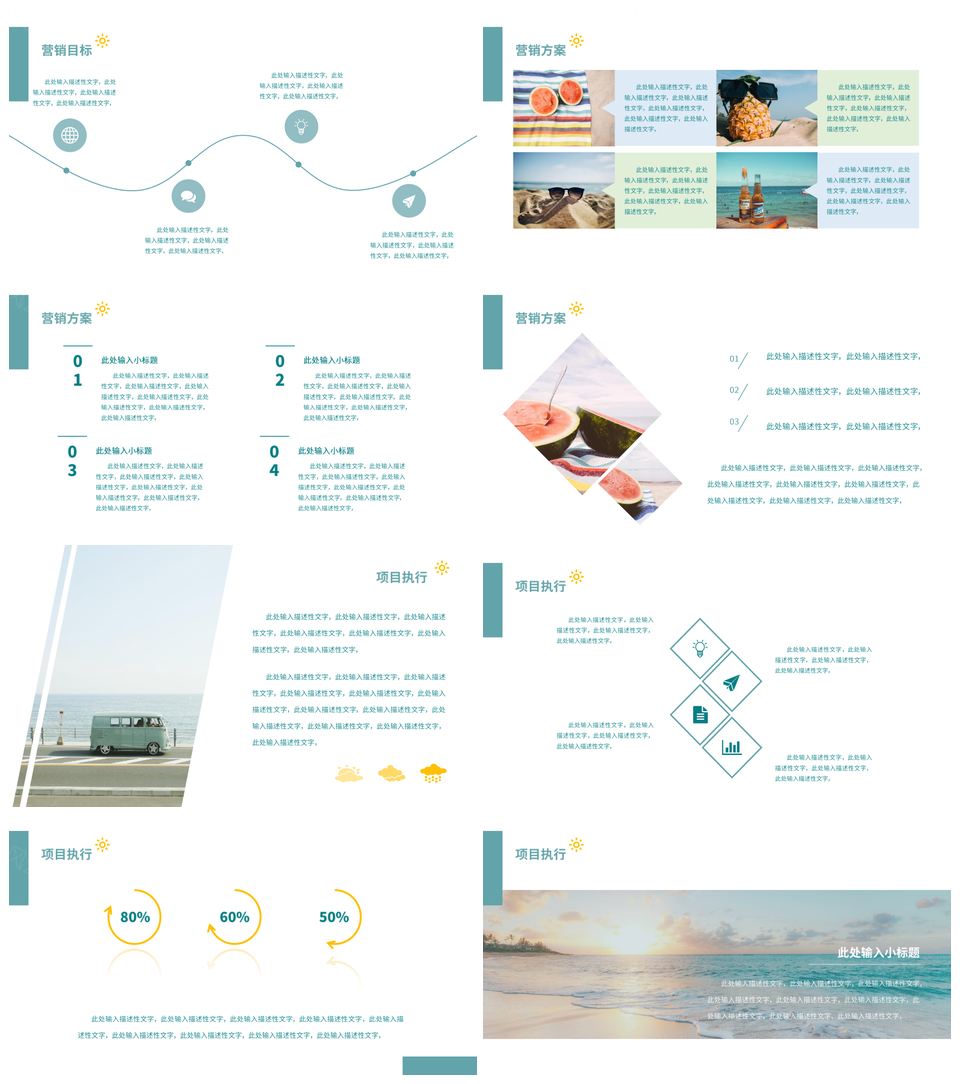 风云办公提供的绿色小清新夏天主题营销策划PPT模板,下载格式为pptx,一共16页,作品中文字及图均可以修改和编辑,图片更改请在作品中右键图片并更换,文字修改请直接点击文字进行修改。
