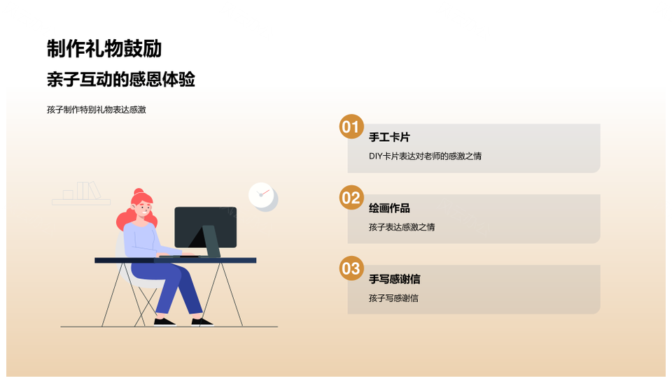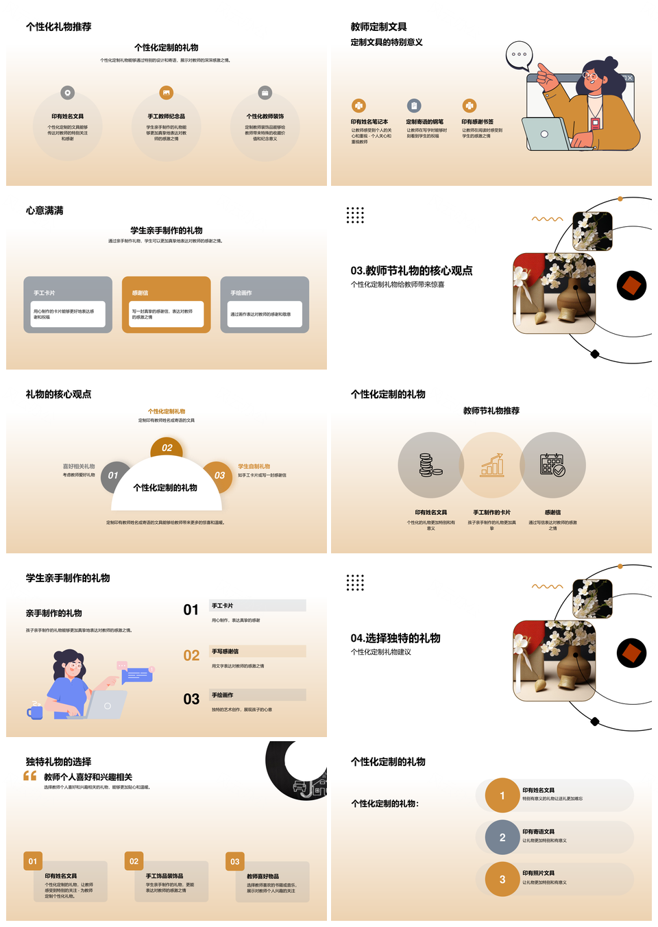 这是一张教师节学生手工定制文具礼物推荐PPT模板,包含教师节、学生、手工、定制、文具、礼物、推荐等主题内容,也可用作教师节学生手工定制文具礼物推荐、教师节学生手工定制、学生手工定制文具礼物、手工定制文具礼物推荐、教师节手工定制礼物、学生手工文具礼物推荐、定制文具礼物推荐、教师节手工文具礼物、教师节学生手工礼物、学生手工定制文具、手工定制文具礼物、文具礼物定制推荐、教师节定制礼物推荐、学生手工礼物推荐、手工文具礼物定制等PPT场景使用。