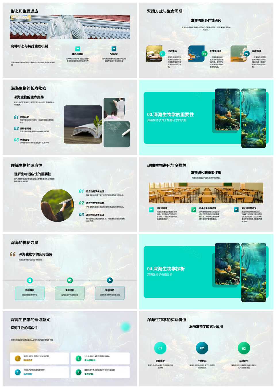 风云办公提供的深海生物适应进化与繁殖生物学研究PPT模板,下载格式为pptx,一共23页,作品中文字及图均可以修改和编辑,图片更改请在作品中右键图片并更换,文字修改请直接点击文字进行修改。