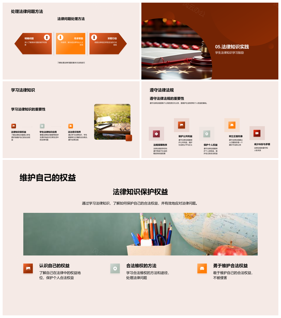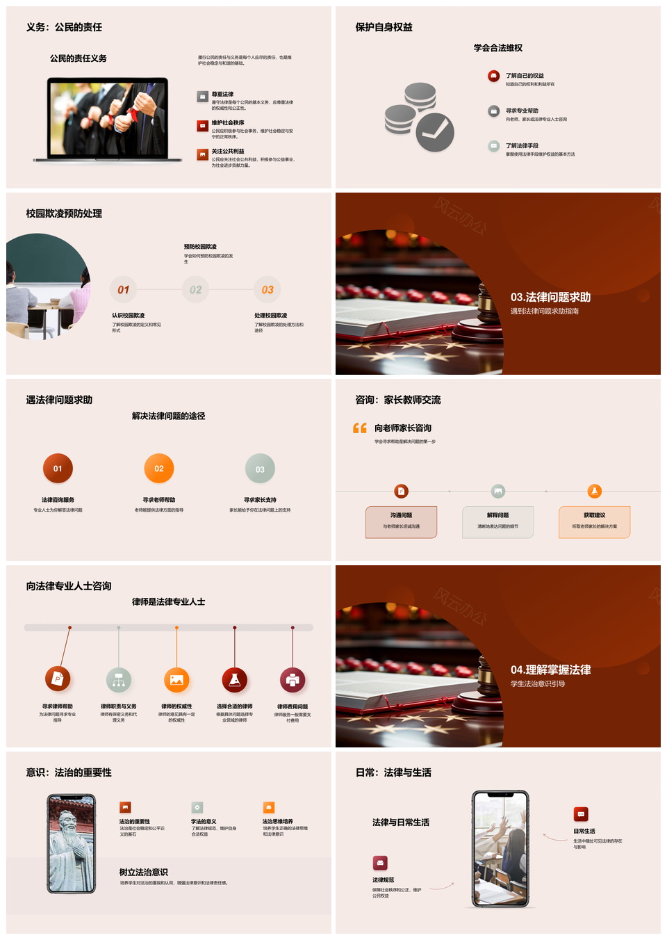 风云办公提供的法治生活护权益树法律意识实践PPT模板,下载格式为pptx,一共23页,作品中文字及图均可以修改和编辑,图片更改请在作品中右键图片并更换,文字修改请直接点击文字进行修改。