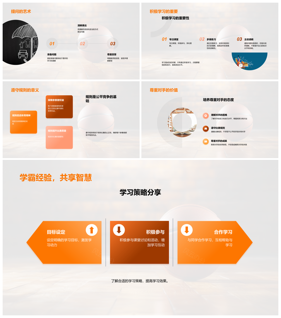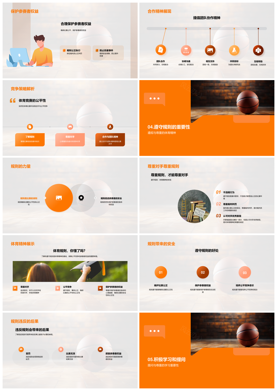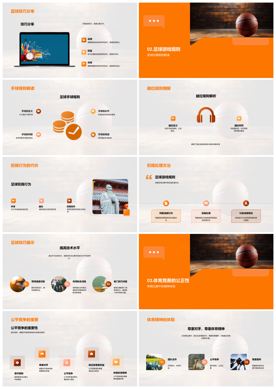 这是一张篮球足球规则体育精神公平竞争尊重对手PPT模板,包含篮球、足球、规则、体育精神、公平竞争、尊重对手等主题内容,也可用作篮球足球规则体育精神、足球规则体育精神公平竞争、规则体育精神公平竞争尊重对手、体育精神公平竞争尊重对手、篮球足球规则体育、足球规则体育精神公平、规则体育精神公平竞争、体育精神公平竞争尊重、公平竞争尊重对手、篮球足球规则、足球规则体育、规则体育精神、体育精神公平、公平竞争尊重、竞争尊重对手等PPT场景使用。 风云办公提供的篮球足球规则体育精神公平竞争尊重对手PPT模板,下载格式为pptx,一共33页,作品中文字及图均可以修改和编辑,图片更改请在作品中右键图片并更换,文字修改请直接点击文字进行修改。