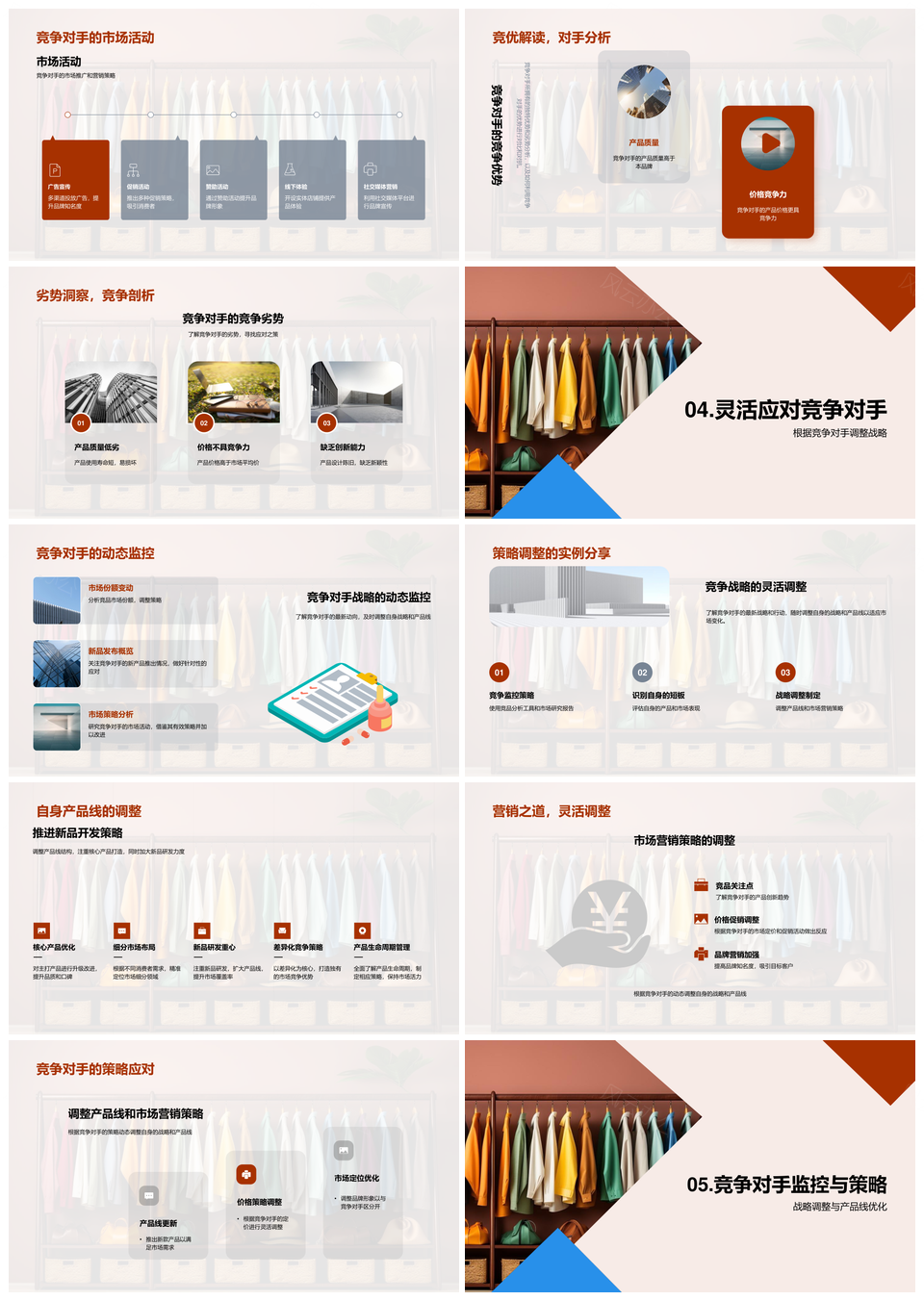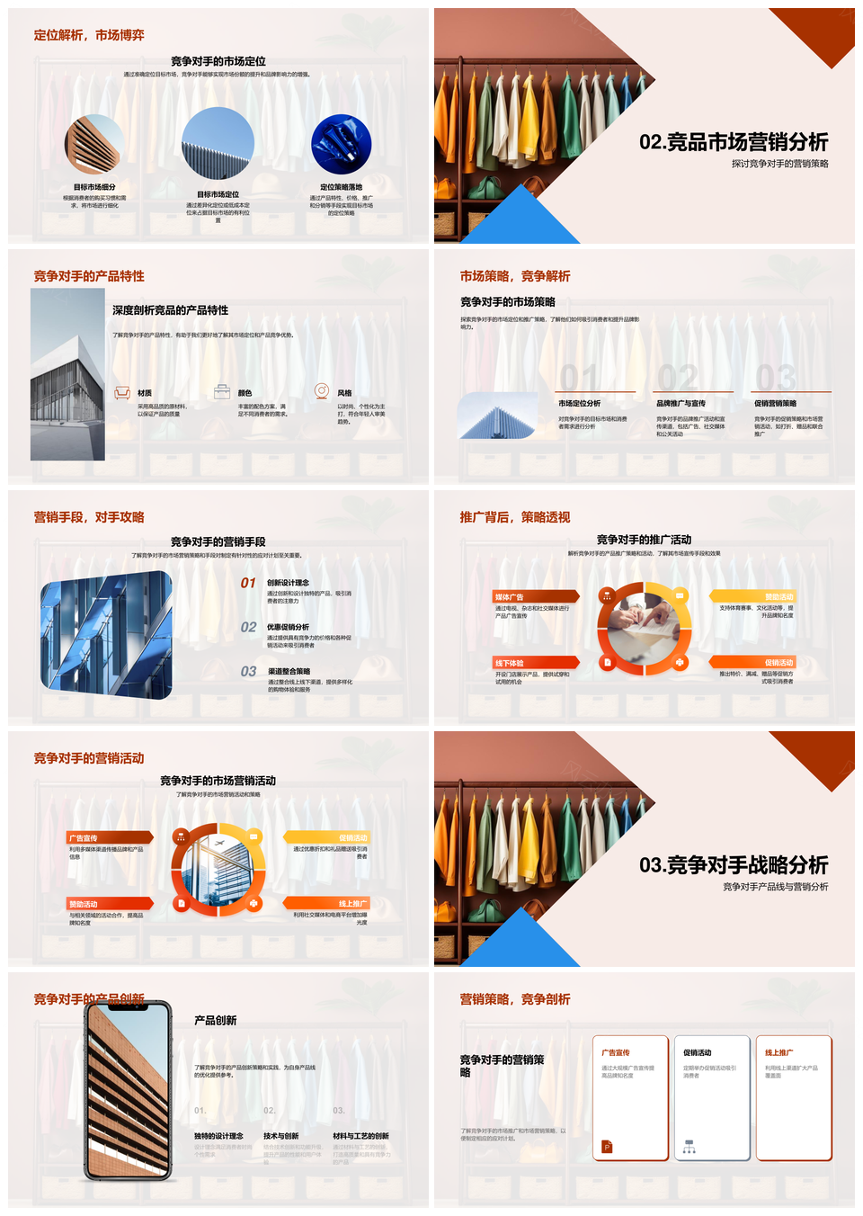 这是一张时尚服装竞品战略调整与市场定位拆解PPT模板,包含时尚服装、竞品、战略调整、市场定位、拆解等主题内容,也可用作时尚服装竞品战略调整、时尚服装竞品战略定位、时尚服装竞品市场拆解、服装竞品战略调整市场、竞品战略调整定位拆解、时尚服装战略定位拆解、服装市场定位战略调整、竞品市场战略定位拆解、服装战略调整市场定位、竞品调整与市场定位、时尚服装竞品战略、服装竞品市场定位、战略调整市场定位、服装市场战略调整、竞品战略定位拆解等PPT场景使用。