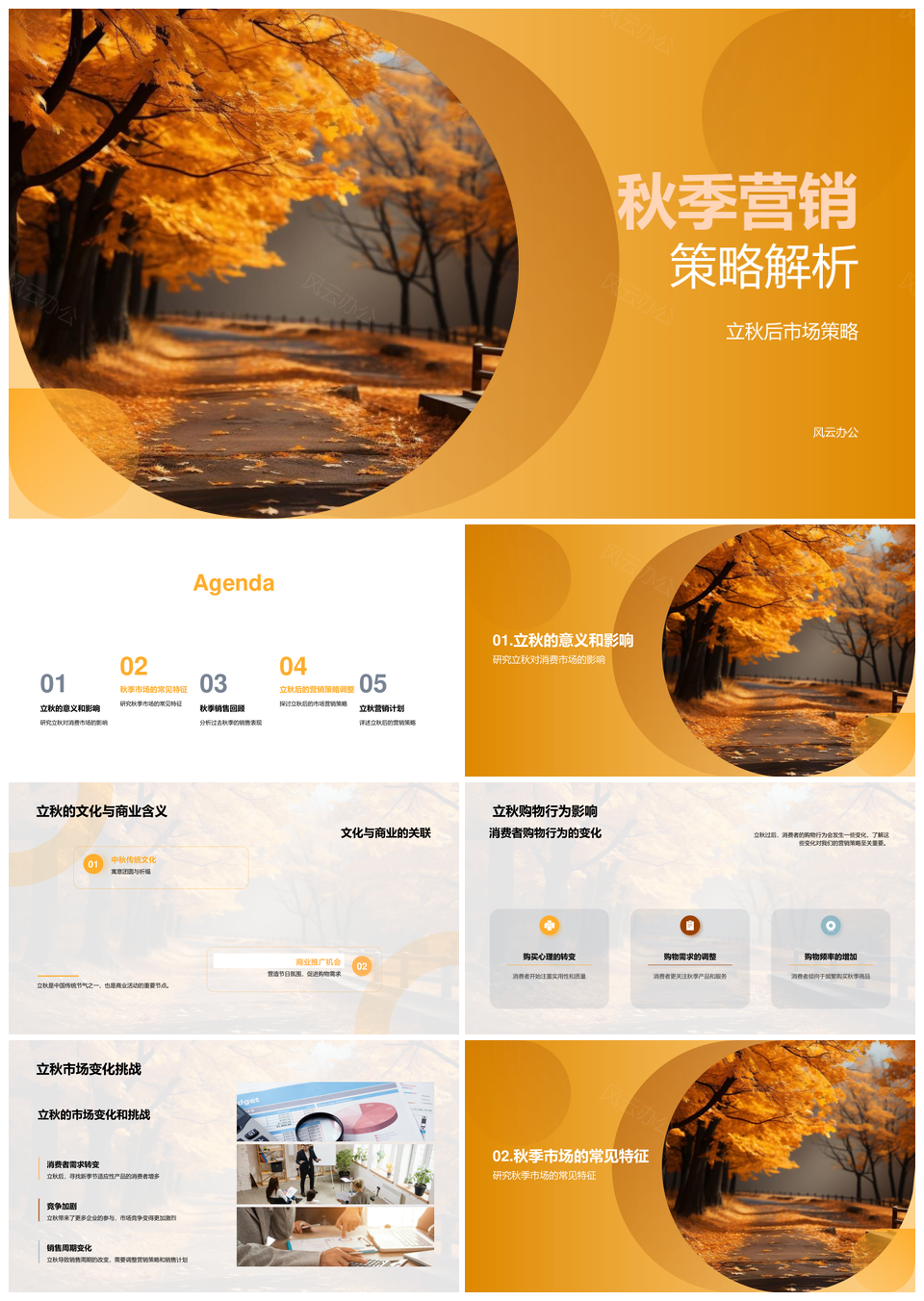 风云办公提供的秋季市场消费趋势与营销策略解析PPT模板,下载格式为pptx,一共23页,作品中文字及图均可以修改和编辑,图片更改请在作品中右键图片并更换,文字修改请直接点击文字进行修改。