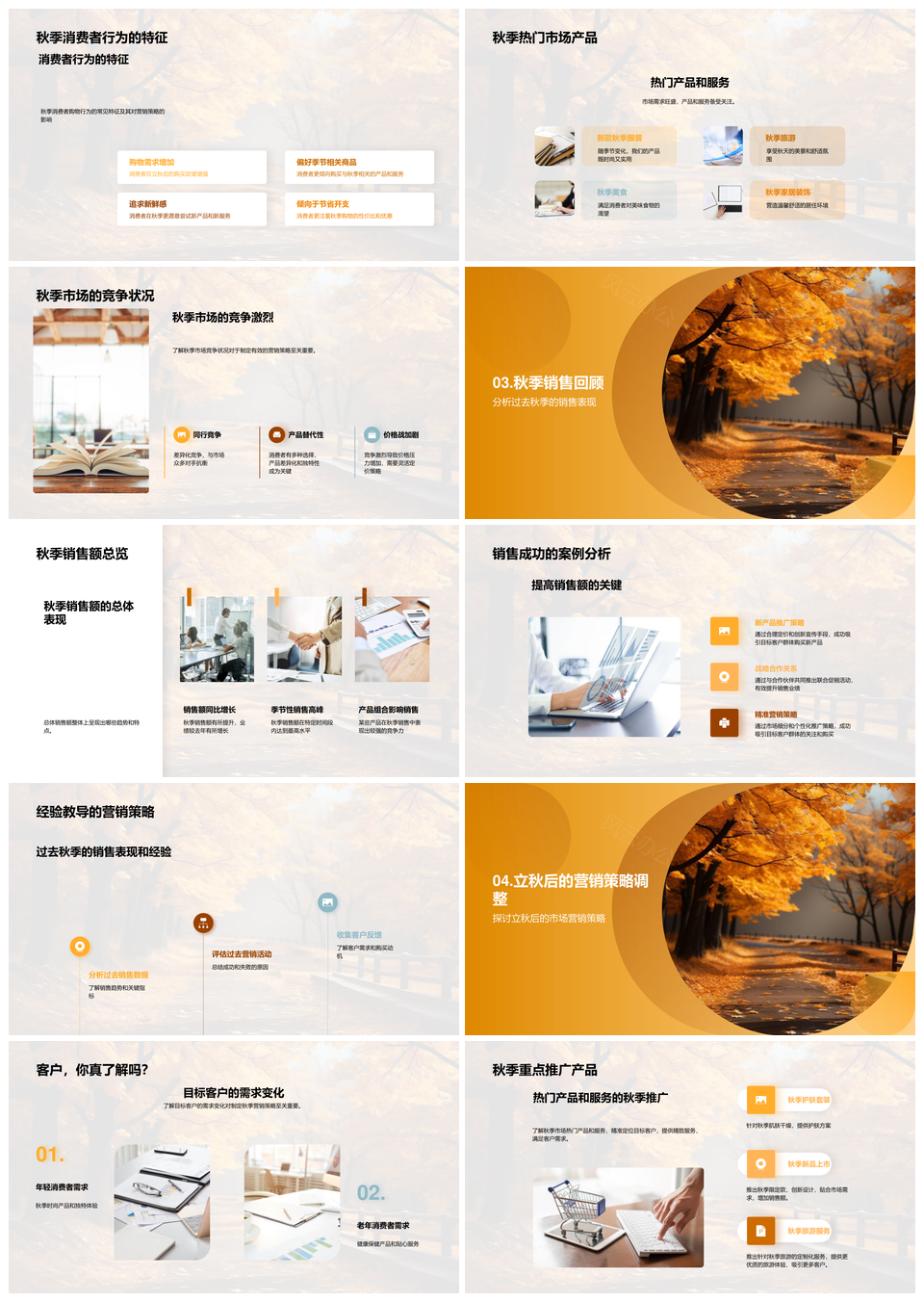 这是一张秋季市场消费趋势与营销策略解析PPT模板,包含秋季、市场、消费趋势、营销策略、解析等主题内容,也可用作秋季市场消费趋势、秋季市场营销策略、市场消费趋势解析、消费趋势营销策略、市场消费趋势、市场营销策略、营销策略解析、秋季消费趋势、秋季营销策略、消费趋势解析、市场策略解析、秋季市场、消费趋势、营销策略、策略解析等PPT场景使用。