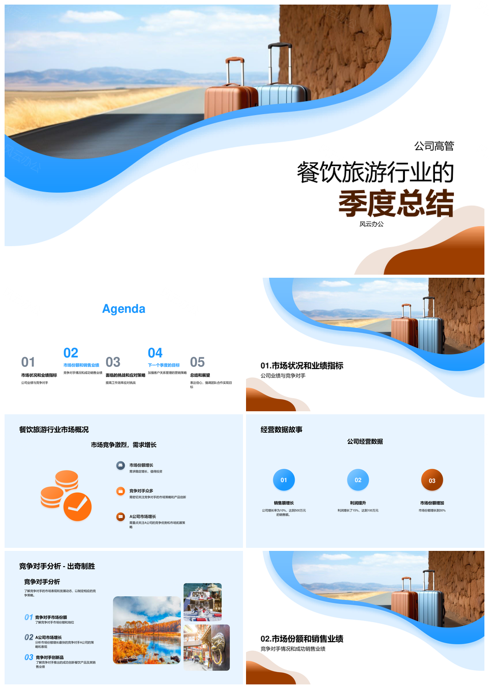 餐饮旅游行业季度总结高管员工市场竞对业绩数据PPT模板推荐
