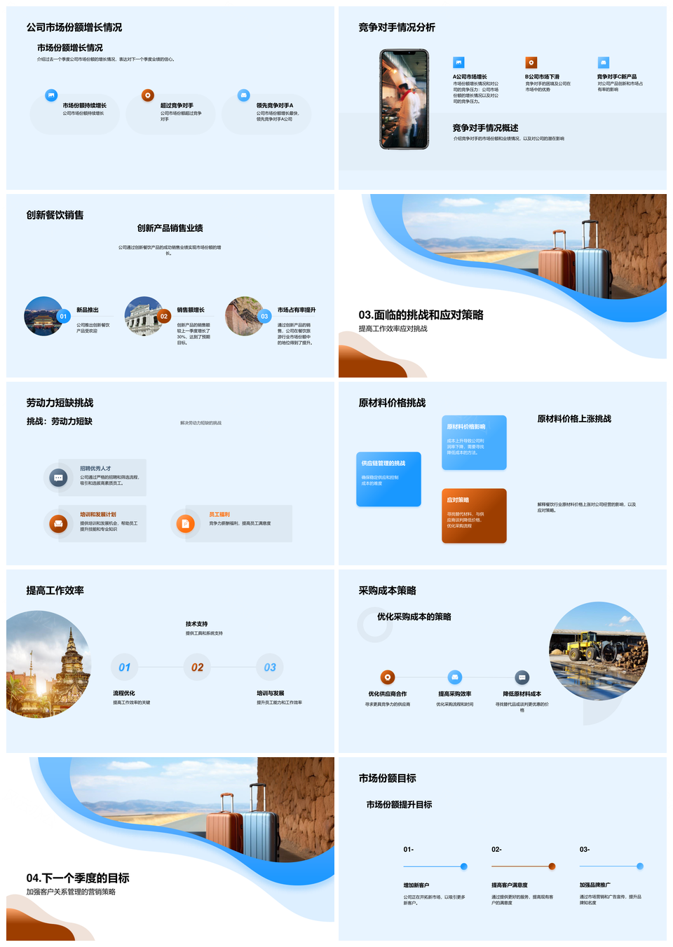 餐饮旅游行业季度总结高管员工市场竞对业绩数据PPT模板