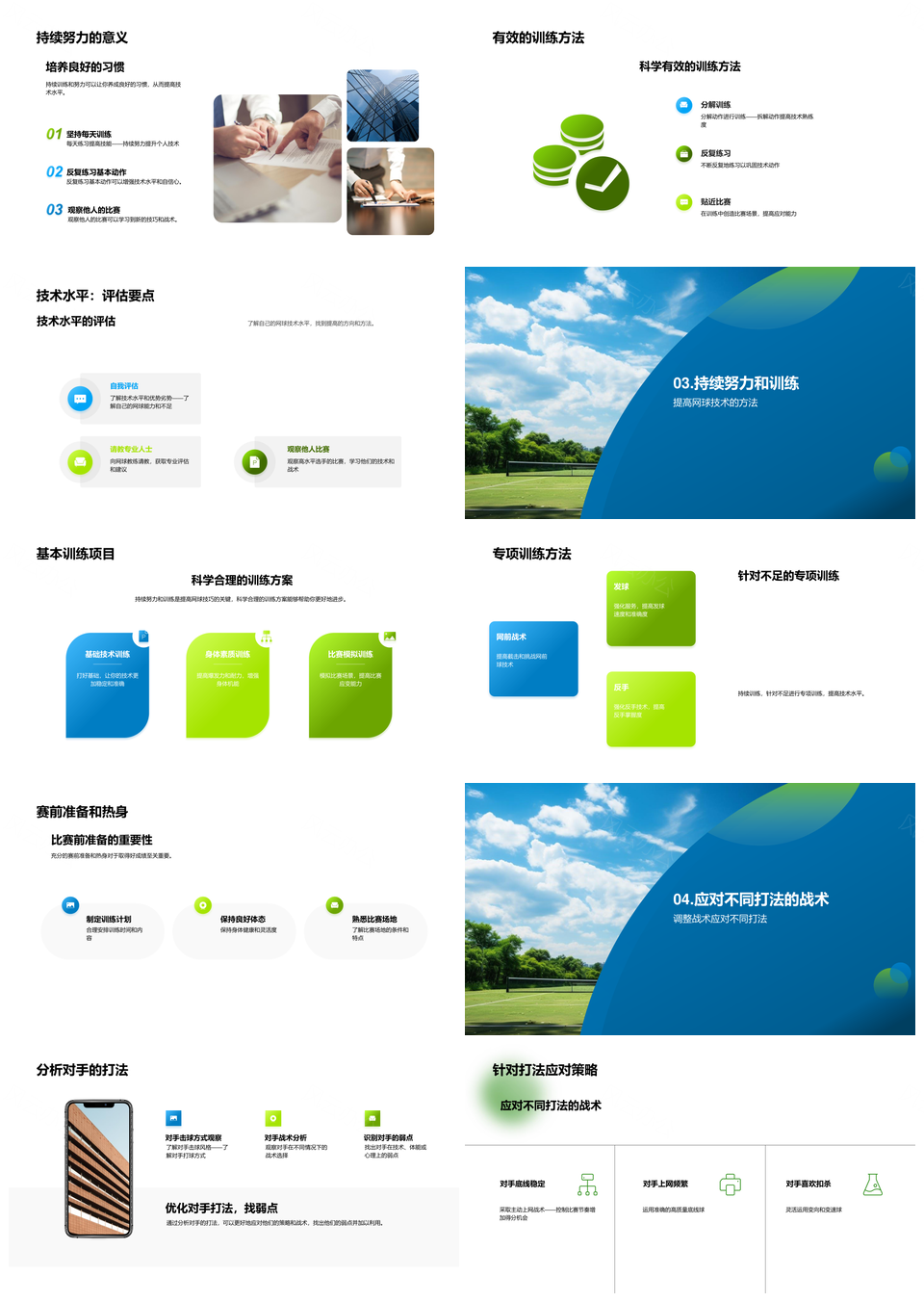 这是一张网球比赛技巧提高训练方法与规则掌握PPT模板,包含网球比赛、技巧提高、训练方法、规则掌握等主题内容,也可用作网球比赛技巧提高、比赛技巧提高训练方法、技巧提高训练方法规则、提高训练方法规则掌握、网球比赛技巧、比赛技巧提高、技巧提高训练方法、提高训练方法规则、训练方法规则掌握、网球比赛、比赛技巧、技巧提高、提高训练方法、训练方法规则、规则掌握等PPT场景使用。
