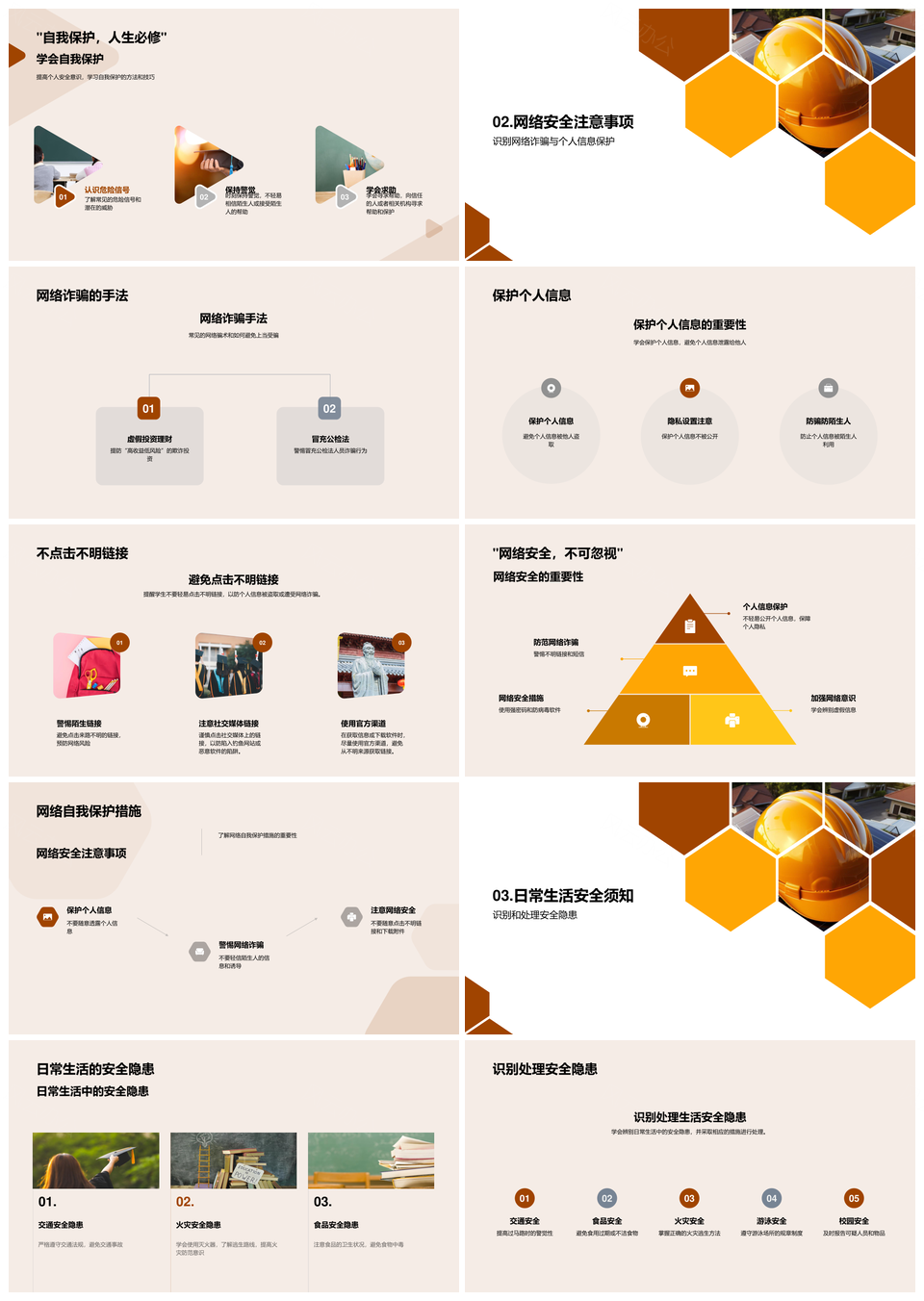 这是一张校园人身网络日常安全防护与自我保护PPT模板,包含校园、人身、网络、日常、安全、防护、自我保护等主题内容,也可用作校园人身网络日常安全防护、校园人身安全防护、校园网络安全防护、人身网络日常安全防护、网络日常安全防护、日常安全防护自我保护、安全防护自我保护、校园安全防护、人身安全防护、网络安全防护、日常安全防护、校园网络、人身网络、校园日常、网络日常等PPT场景使用。