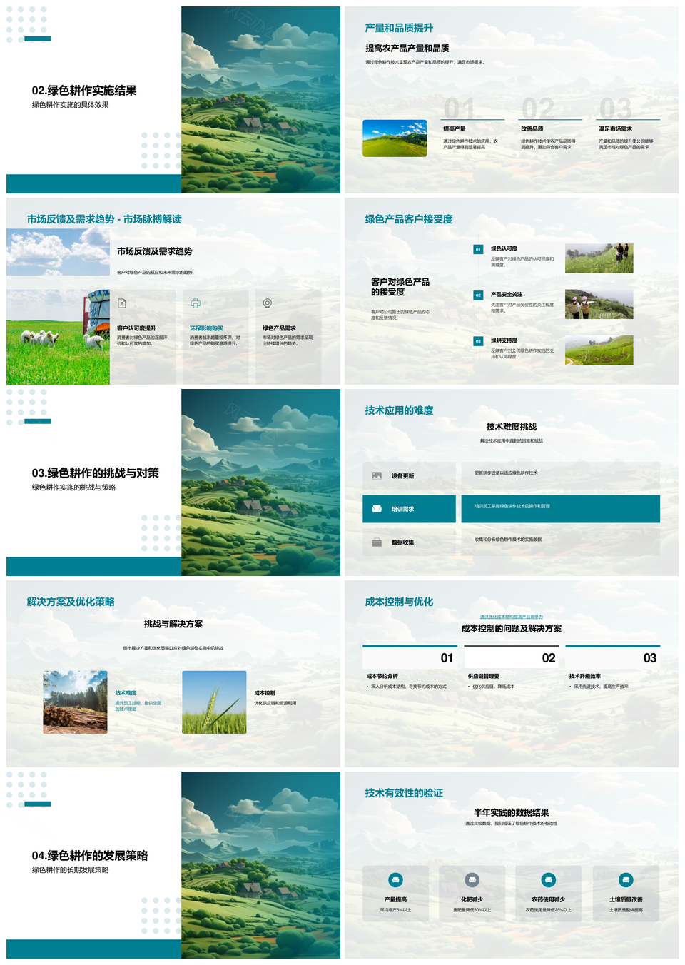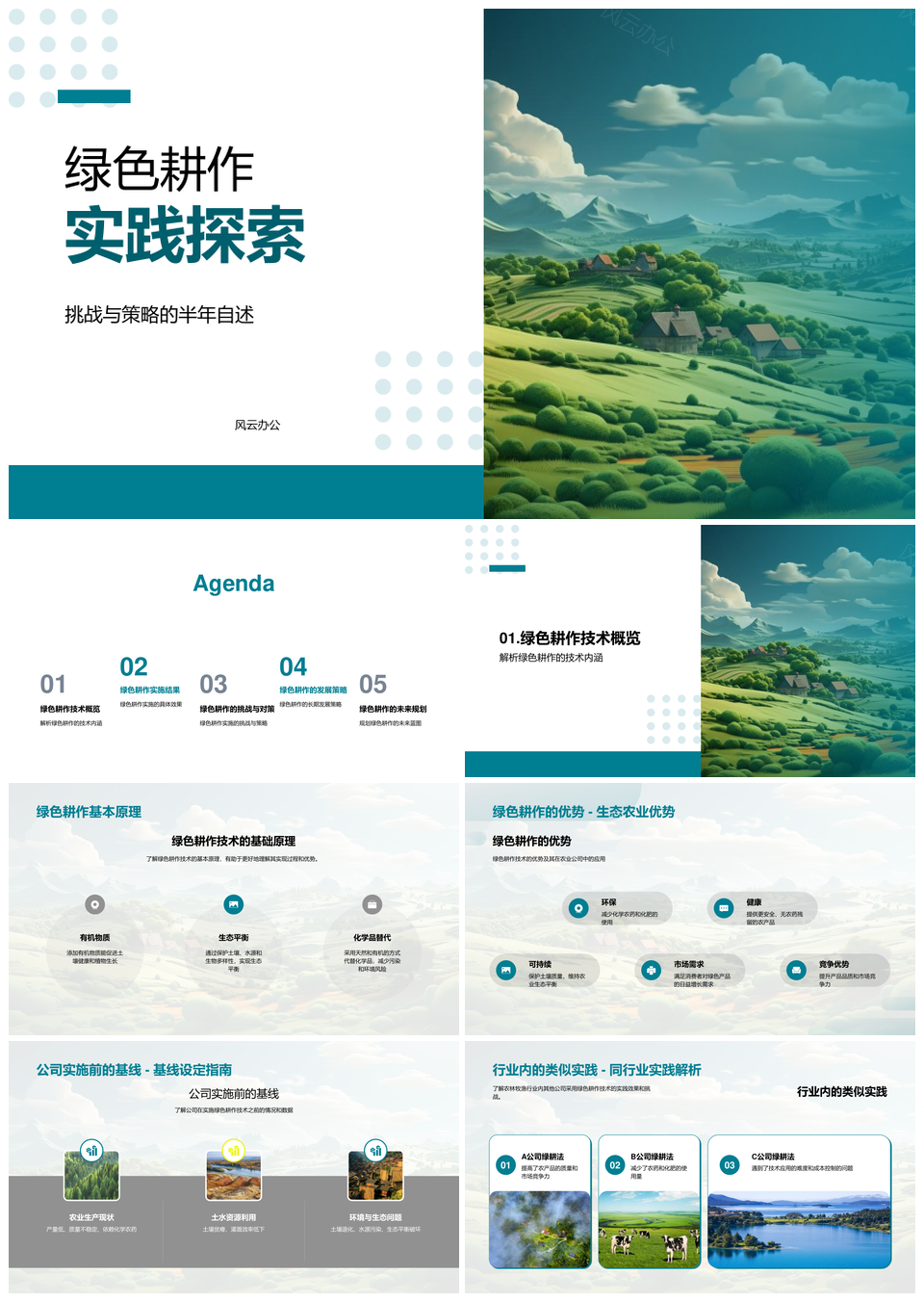 风云办公提供的农业公司绿色耕作技术实施策略挑战PPT模板,下载格式为pptx,一共24页,作品中文字及图均可以修改和编辑,图片更改请在作品中右键图片并更换,文字修改请直接点击文字进行修改。