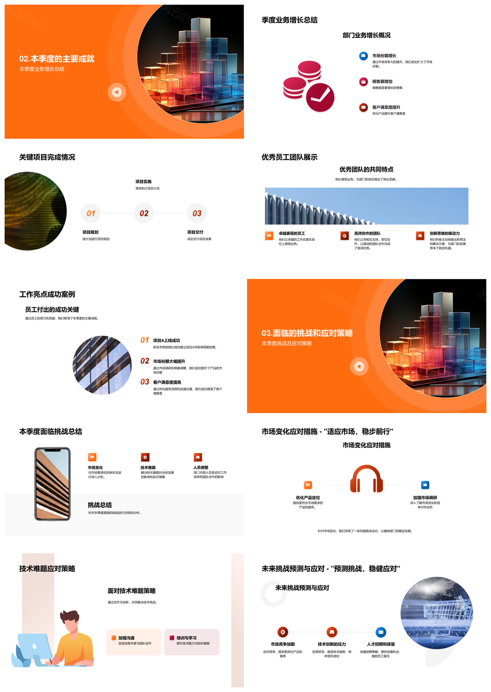 季度部门目标市场趋势业务增长项目团队挑战应对展望PPT模板推荐