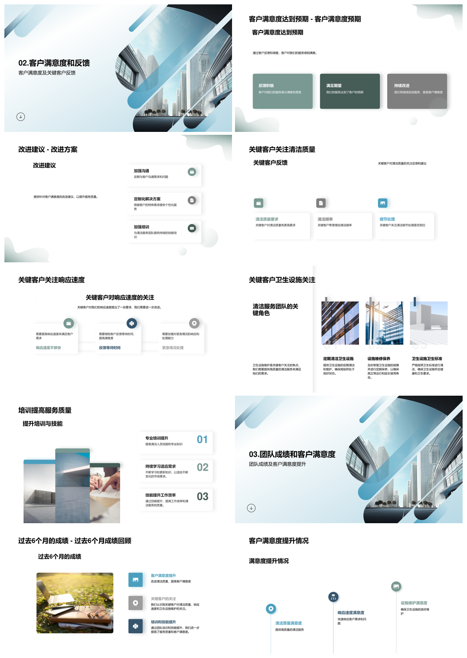 建筑物清洁服务年中总结团队管理客户群体PPT模板