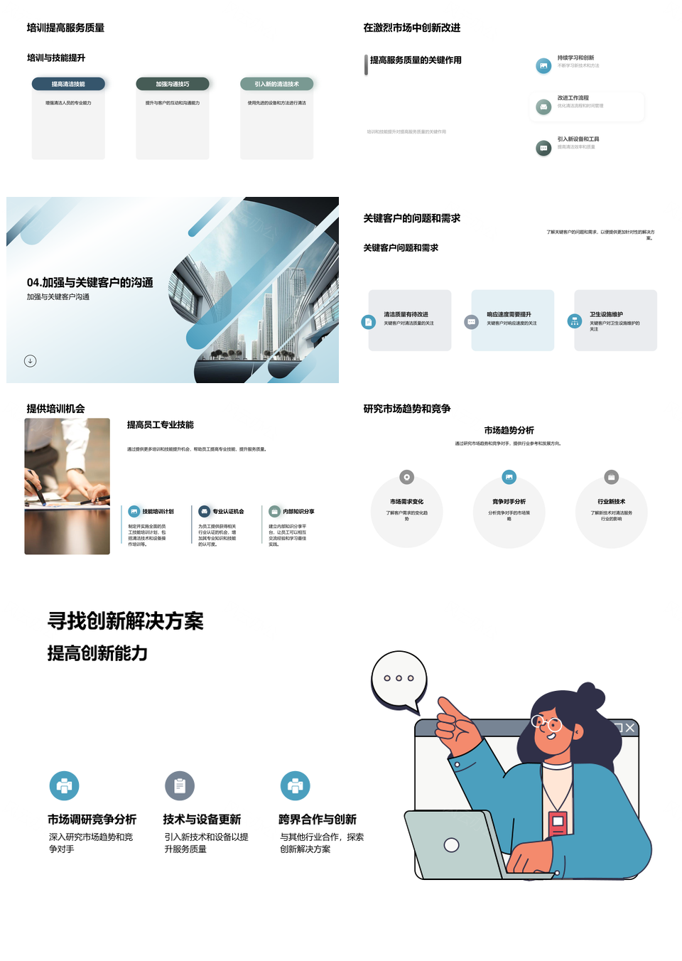 这是一张建筑物清洁服务年中总结团队管理客户群体PPT模板,包含建筑物、清洁服务、年中总结、团队、管理、客户、群体等主题内容,也可用作建筑物清洁服务年中、年中总结团队管理、团队管理客户群体、客户群体清洁服务、建筑物年中总结团队、总结团队管理客户、清洁服务年中总结、服务年中总结团队、管理客户群体清洁、群体清洁服务年中、建筑物清洁年中总结、年中团队管理客户、服务总结团队管理、清洁服务管理客户、团队客户群体清洁等PPT场景使用。 风云办公提供的建筑物清洁服务年中总结团队管理客户群体PPT模板,下载格式为pptx,一共25页,作品中文字及图均可以修改和编辑,图片更改请在作品中右键图片并更换,文字修改请直接点击文字进行修改。
