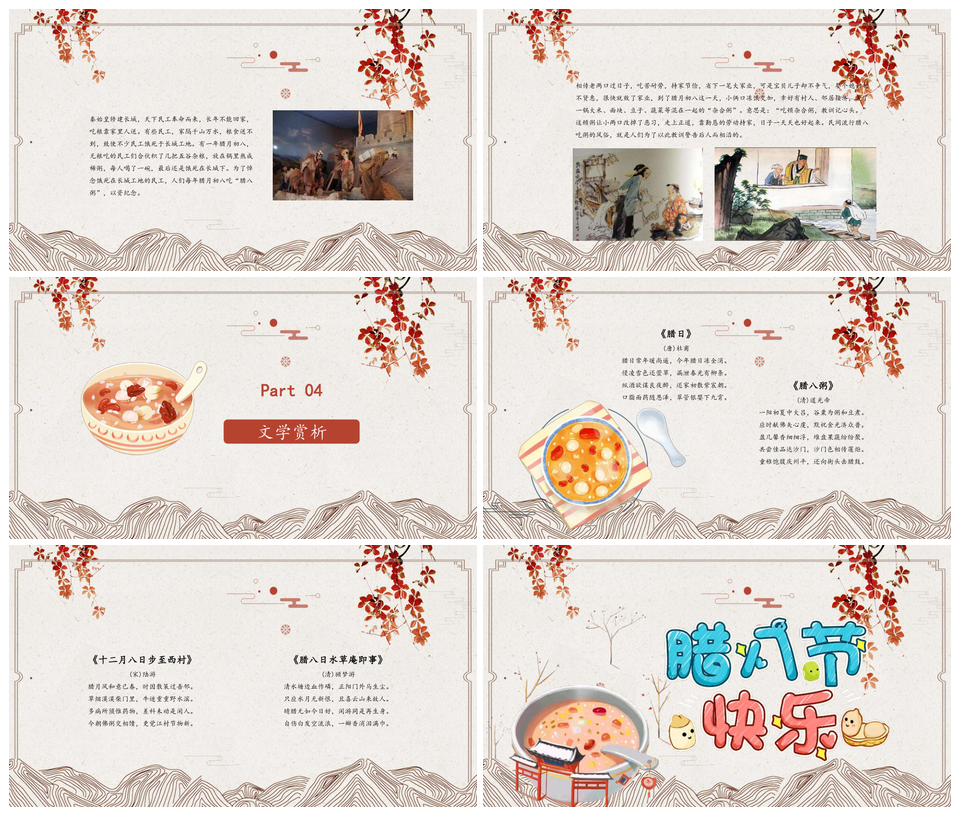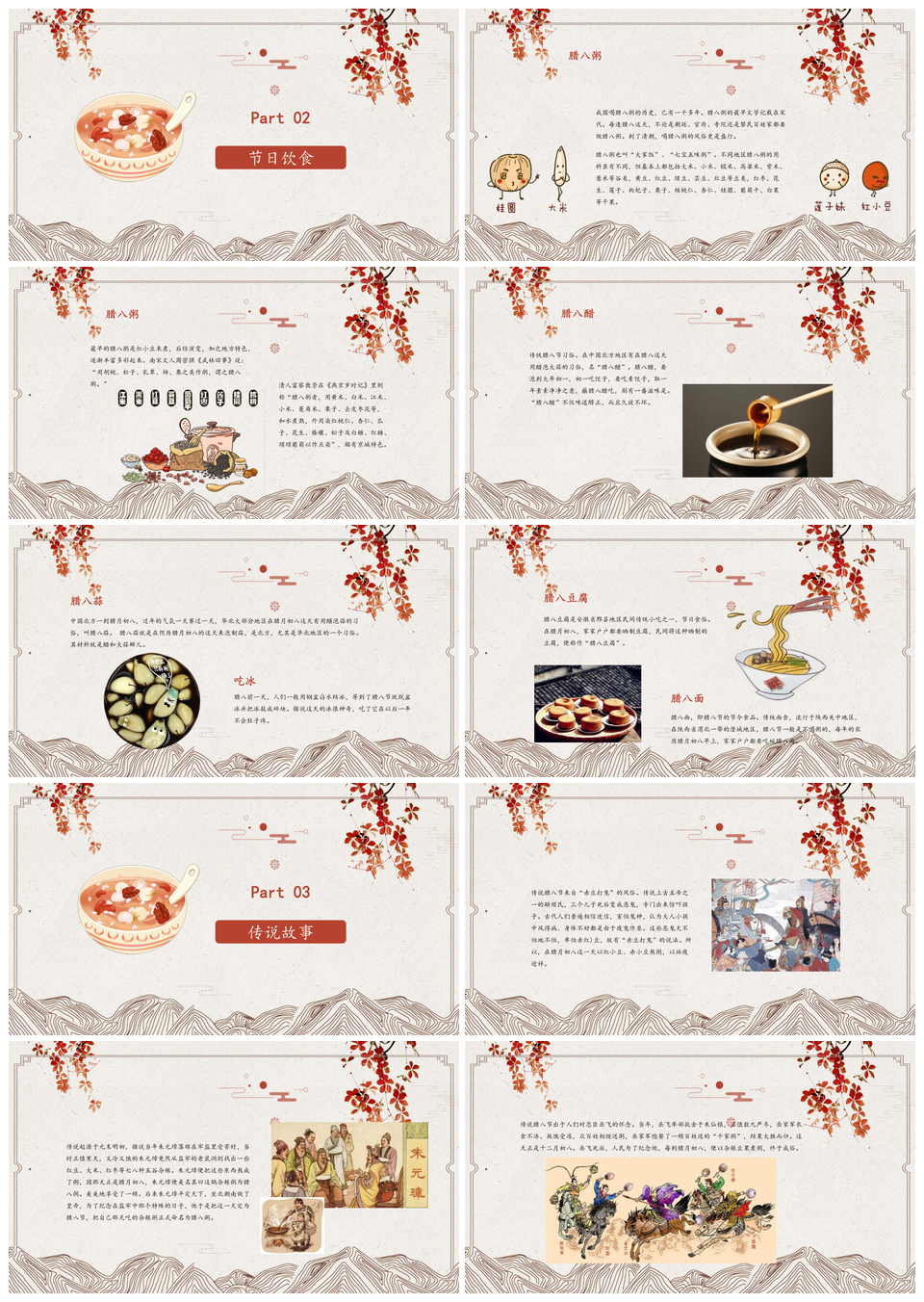 红色传统节日腊八节中国风古风淡雅PPT模板